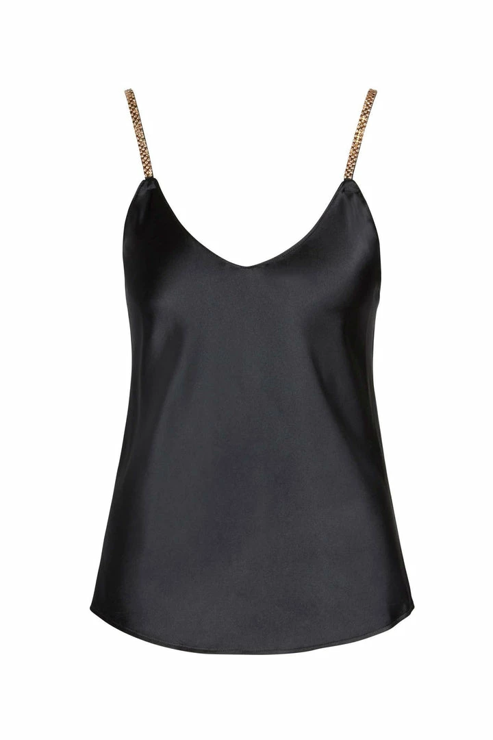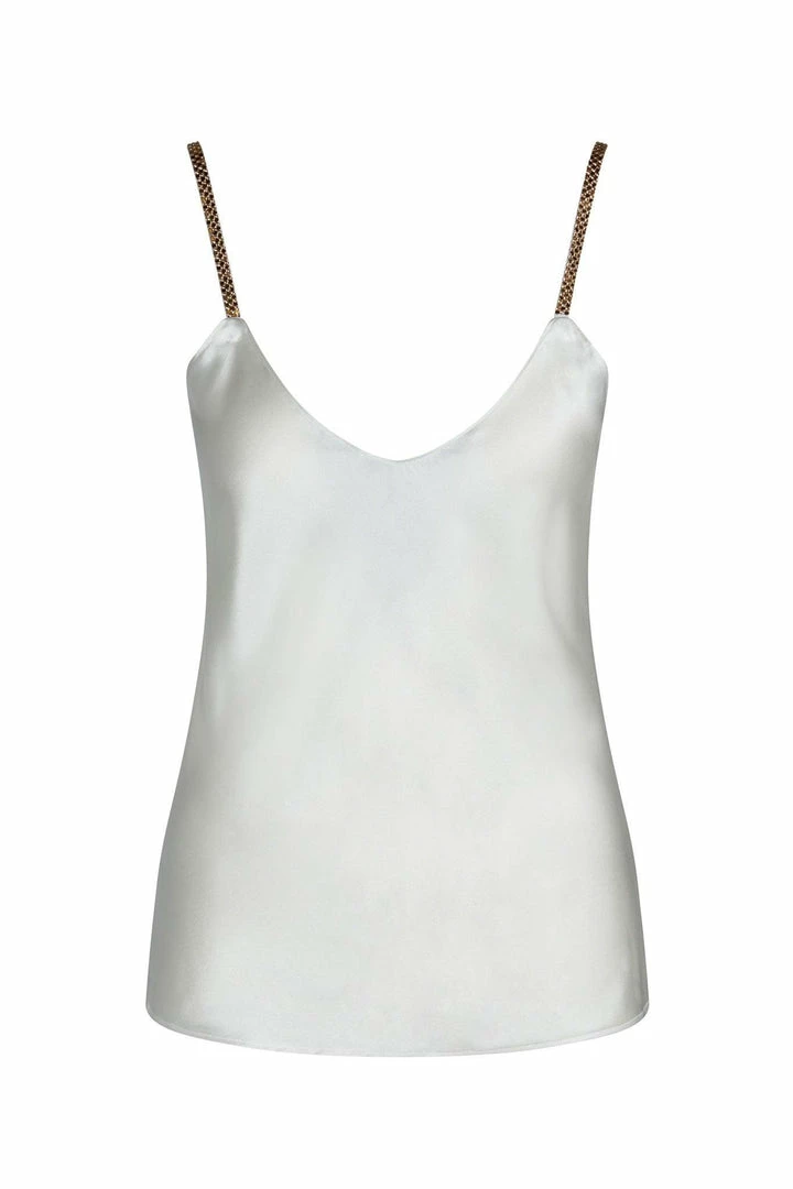 Wear the Chiara Cami day or night! This beautiful silk cami features LIMITED EDITION Gold Swarovski straps. Paired with the Chiara Tap Short for a luxurious sleep set.