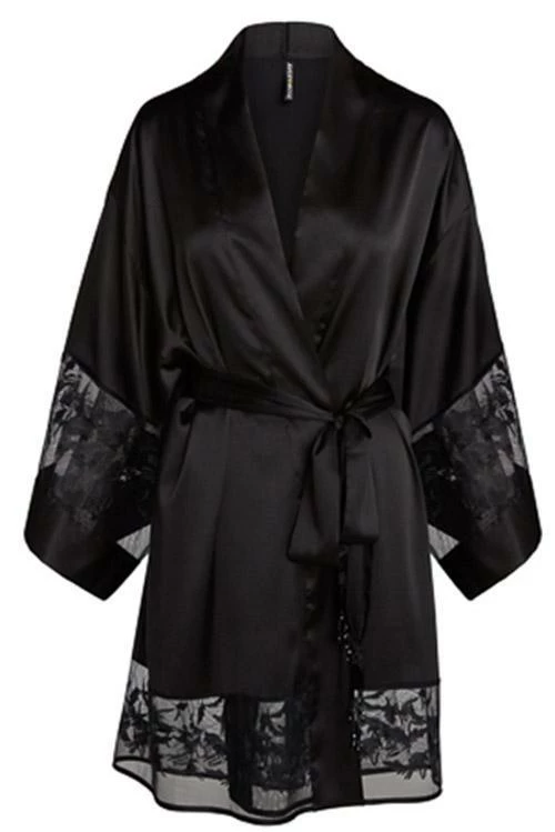 This silk and embroidered mesh Dana Robe is both beautiful and sultry. Wear it in the comfort of your own house or out on the town as an outerwear Kimono.