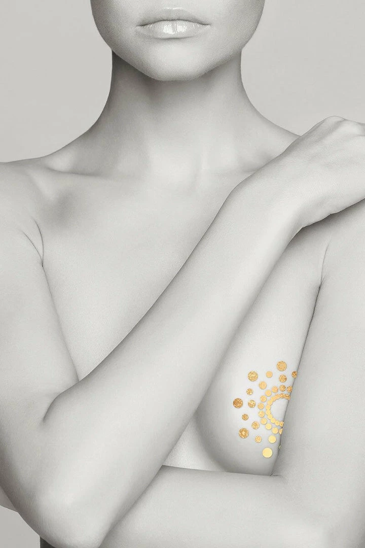 These temporary circular tattoos enhance all kinds of breast shapes and sizes. They retain the iconic classic Mimi shape, sensually decorating the skin and highlighting the beauty of the female body.