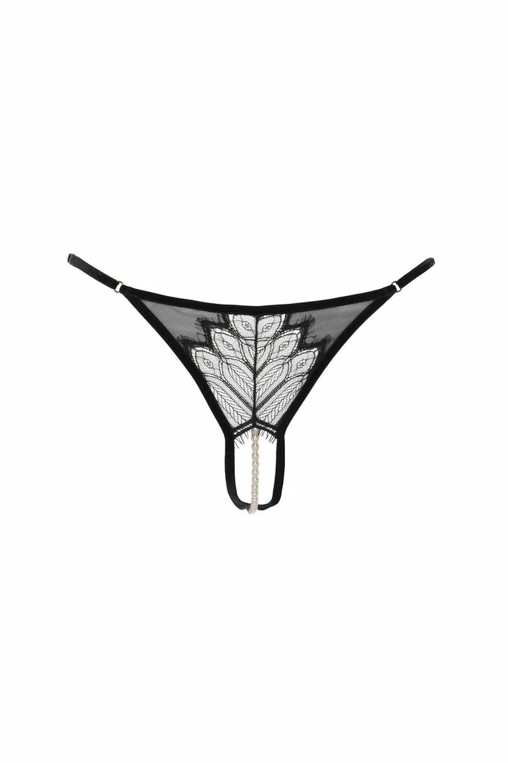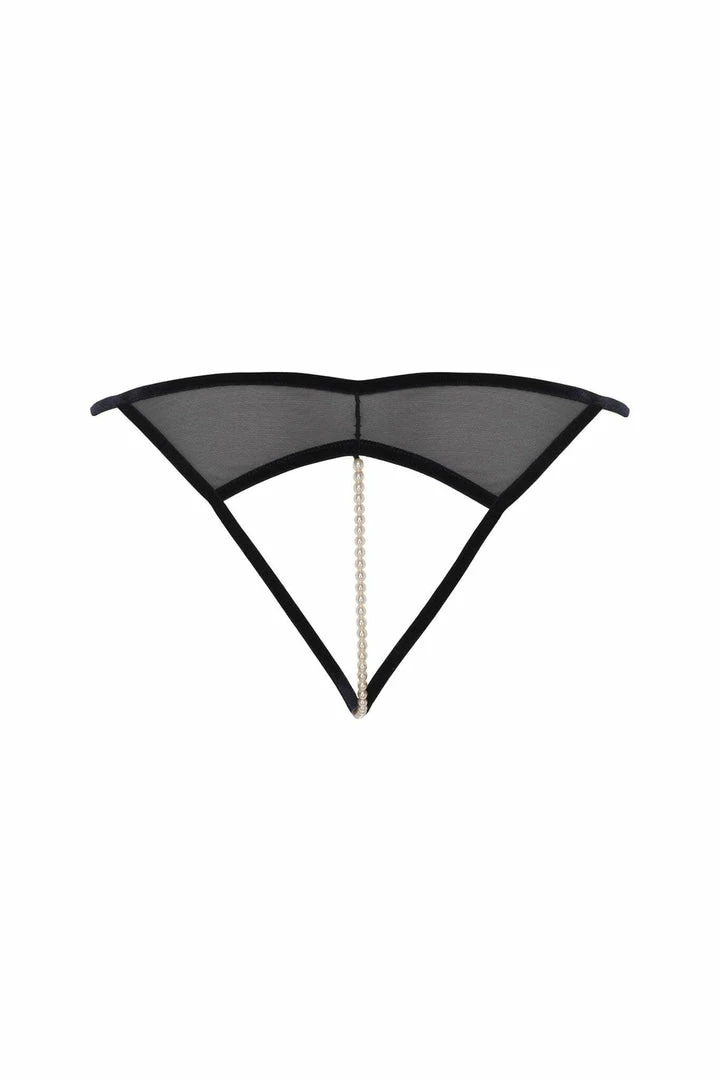 Inspired by the historical capital of Japan. Made with Leavers lace, elastic tulle and velvet. As with all Bracli pieces, the most provocative touch is the necklace made of a strip of pearls, which stimulates the most pleasurable parts of a woman.