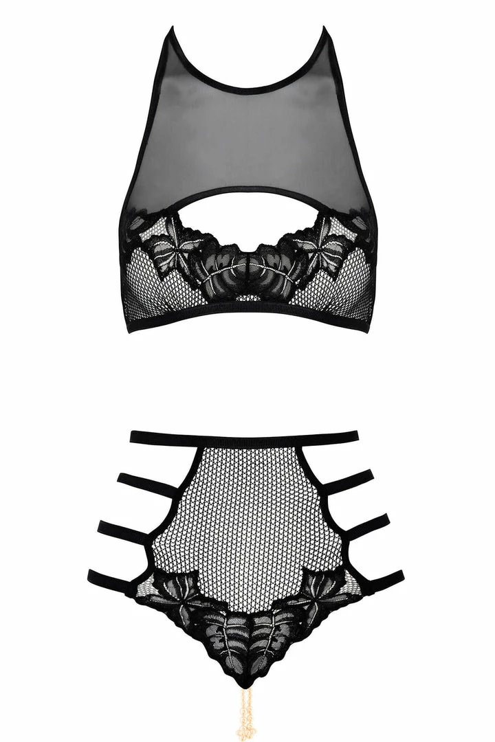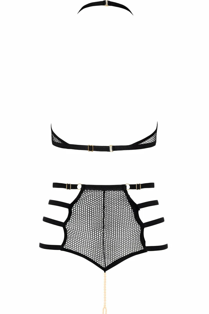 This decadent 2 piece high waist lingerie set is made with Leavers lace, tulle and gold components. Comfortable but seductive design. Perfect to match with any piece in the London Collection.