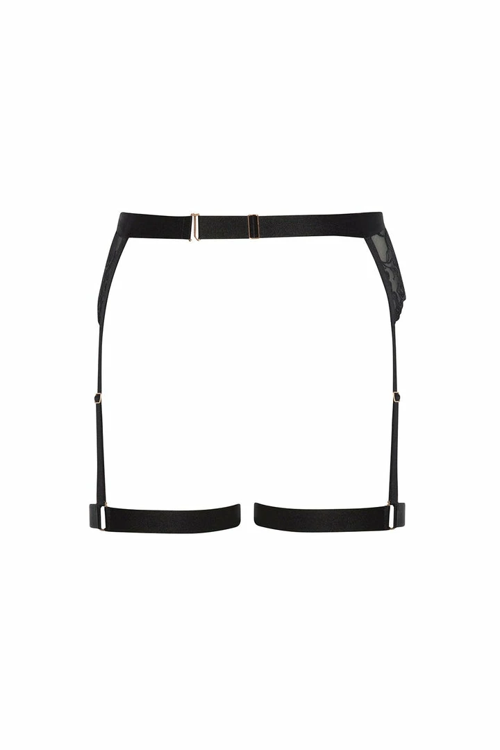 The Vienna Harness Garter is made with embroidered tulle, satin elastic straps and rose-gold components and sliders, creating the ideal accessory for any look of the Vienna Collection.