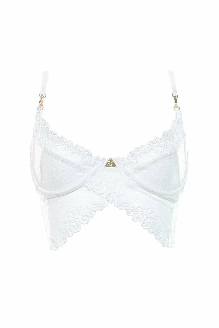 Elegant lace bra with adjustable back and shoulder strap, gold clasp and ring embellishment. Perfect for high end events, luxury settings, intimate evenings and casual streetwear attire. Made with Signature Lace by Demery Jayne.