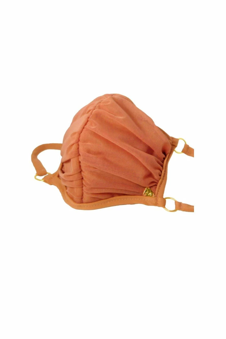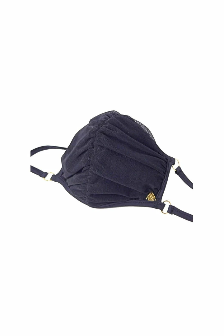 Flirty Feminine mask with luxury mesh fabric gathered accents. The Rumi mask is designed with all the special events in mind from daytime at the beach or poolside at the resort, to night time dining and dancing.