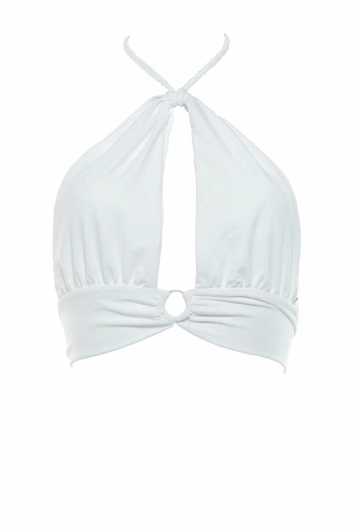 Multifunctional, versatile top with braided ties, gold ring embellishment, and long sash back ties. The perfect addition to complement all occasions. From the water, to elite evening events this piece will take you there. Made flawlessly in Demery Jayne signature fabrics.