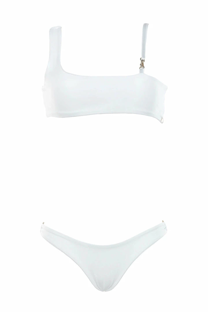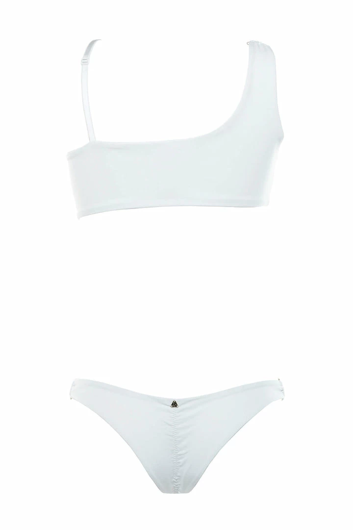 The White Nasiba Bikini Set is uniquely sexy and comfortable. One of a kind seamless style with sportsfit support and feel. Poolside, beach resort, surf, fitness, dining or dancing. This piece is made in lush signature Demery Jayne custom fabrics.