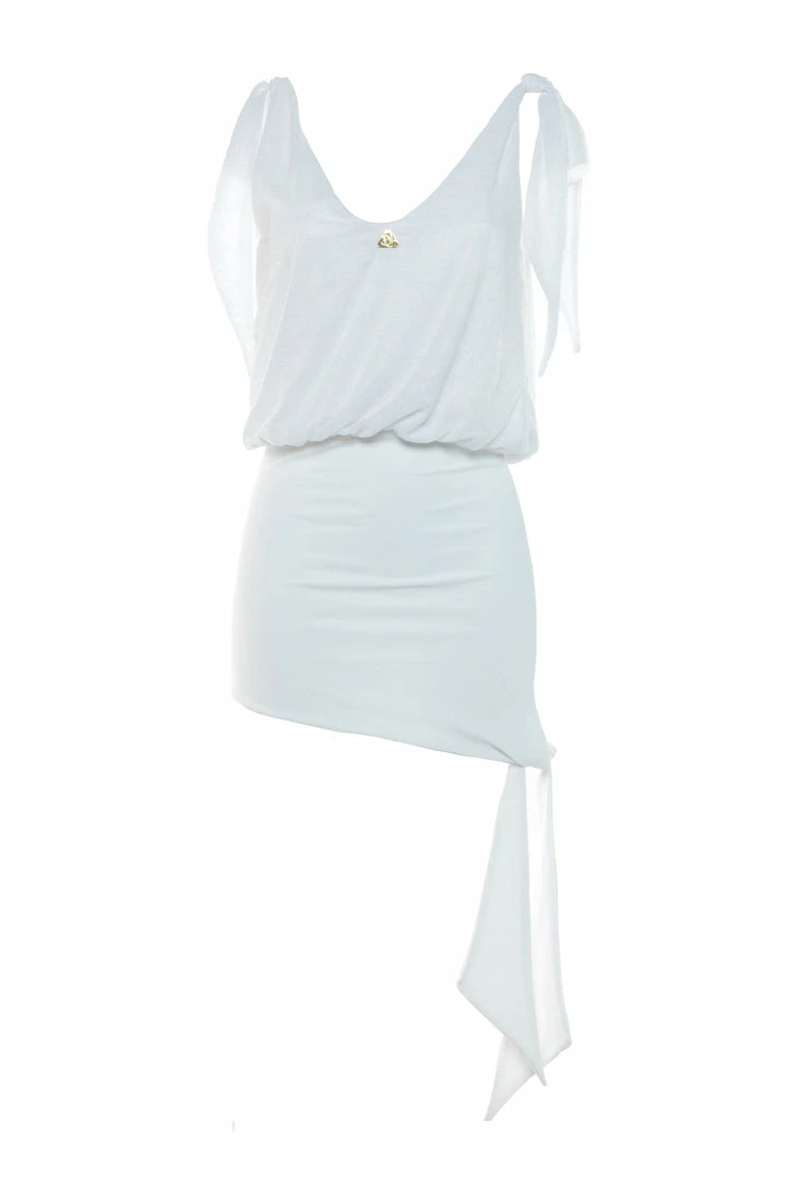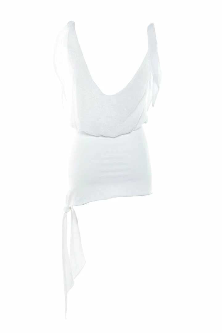 Plunge front, adjustable shoulder ties with drop back and sleek fit skirt, tie side feature for personal touch. This white dress is designed to be worn alone or reversed and paired with any of the Signature piece tops. Ulyana is made from the signature Demery Jayne Collection Lace and complemented with the luxurious solid fabric. For every exclusive event.