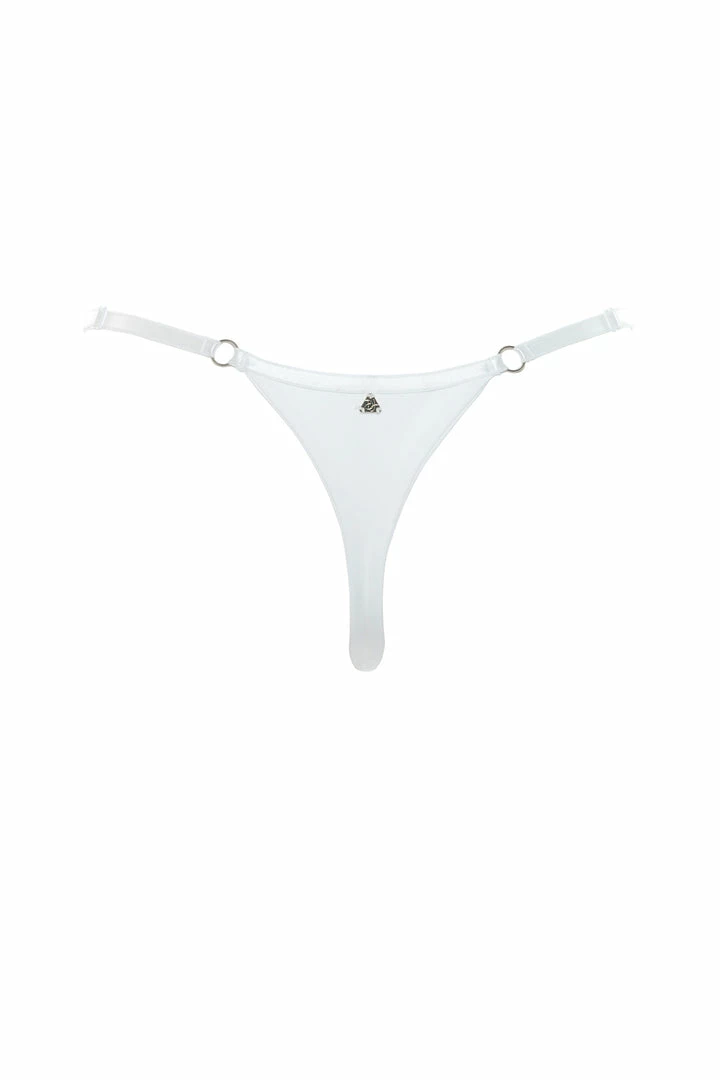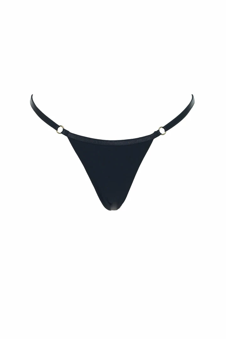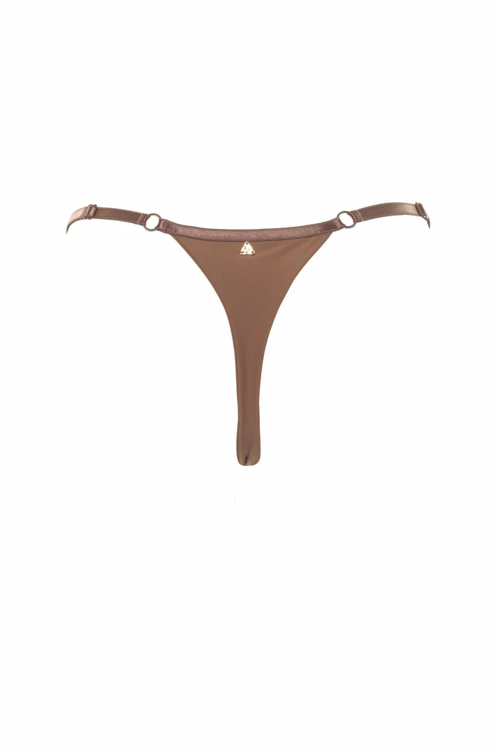Soft, sleek, seamless design is a one of a kind exclusive by Demery Jayne. Embellished with gold rings and designed with adjustable double sided satin straps for sizing and comfort. The Yohji has a sleek triangle designed back for that extra sexy look and feel with minimal coverage. Pair this under any of the Demery Jayne collection designs. A travel necessity for every destination. This design can be worn as lingerie or swimwear