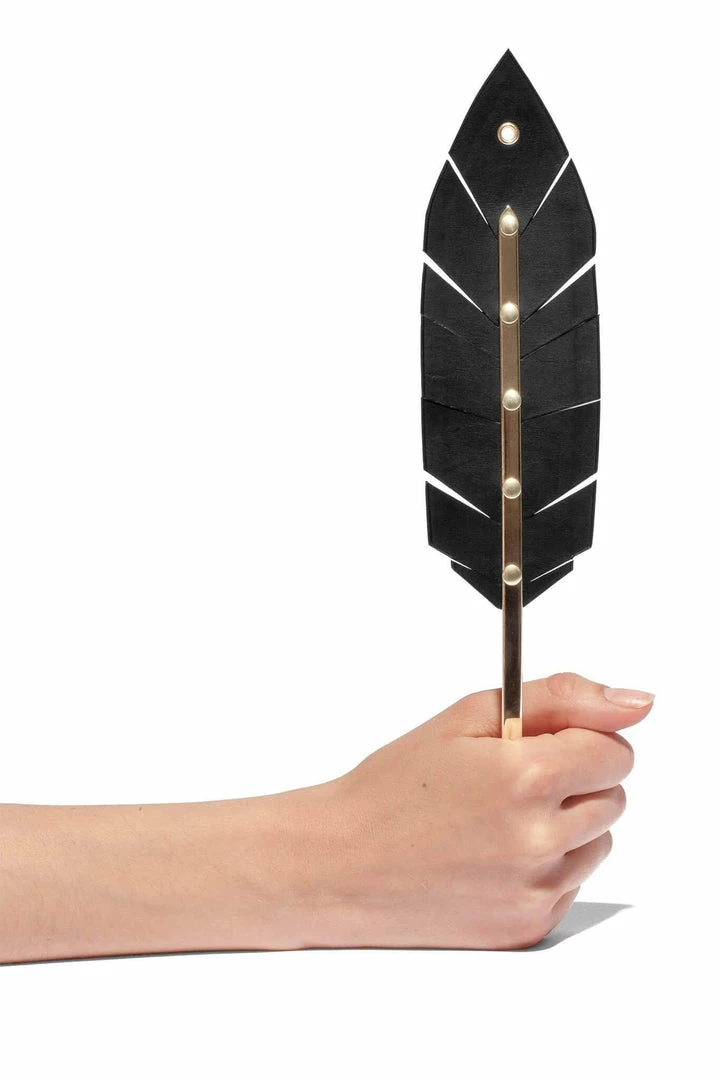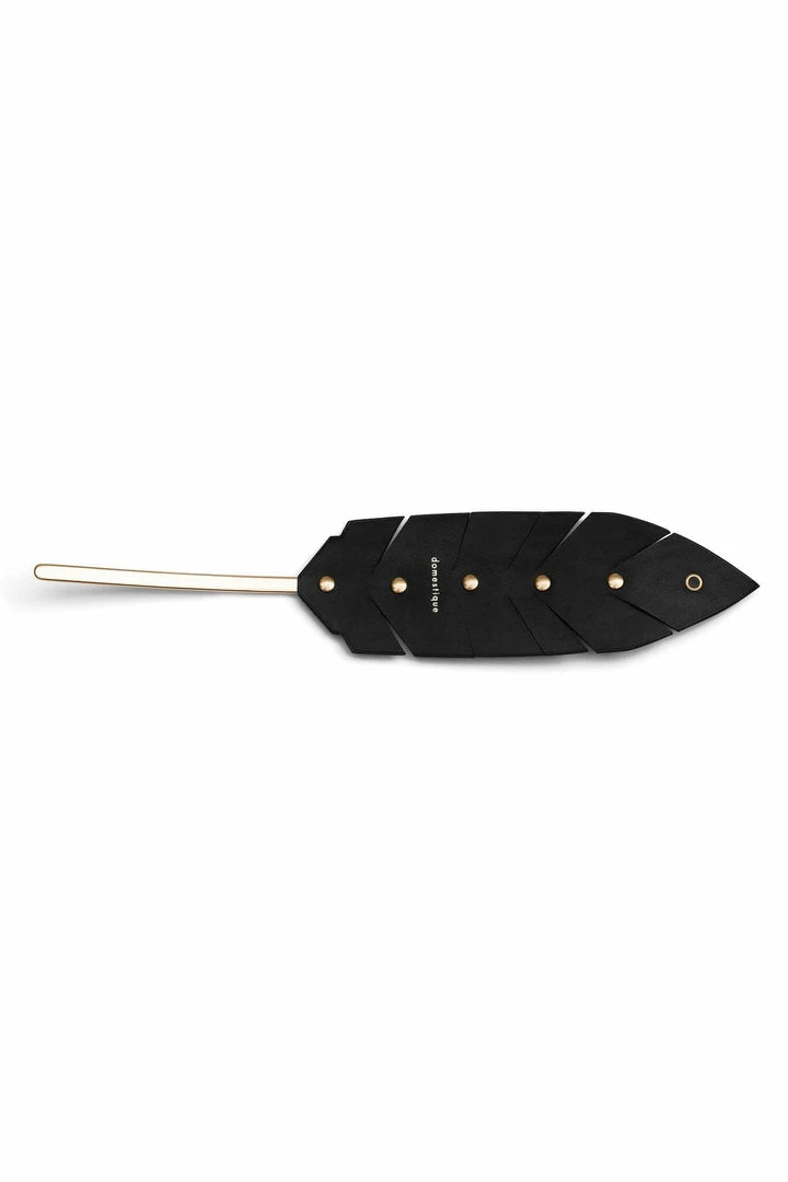 The design version of the iconic BDSM paddle, the leather feather is above anything else, a collector’s item. In natural tanned leather and golden brass or silver palladium, this magic wand both caresses voluptuously or whips passionately. Between two love sessions, it rests as a trophy on the wall or falsely innocent on nightstands.