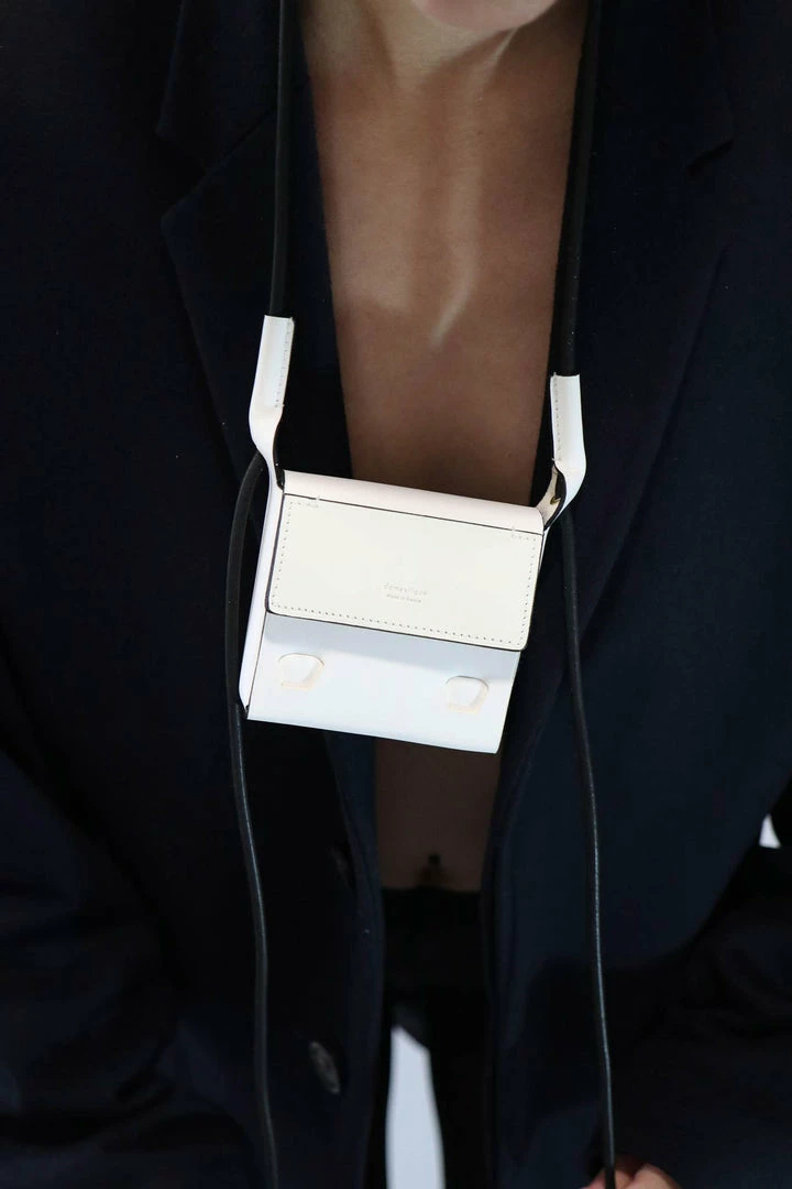 FLAP RANGE is inspired by stationery and more specifically by plastic storage pockets. Seeking the optimization of patronage and assembly for better consumption of the raw material, the adjustable handles allow them to be worn as a shoulder bag, as an hand pouch, as a necklace or waist-tightened in a banana style.