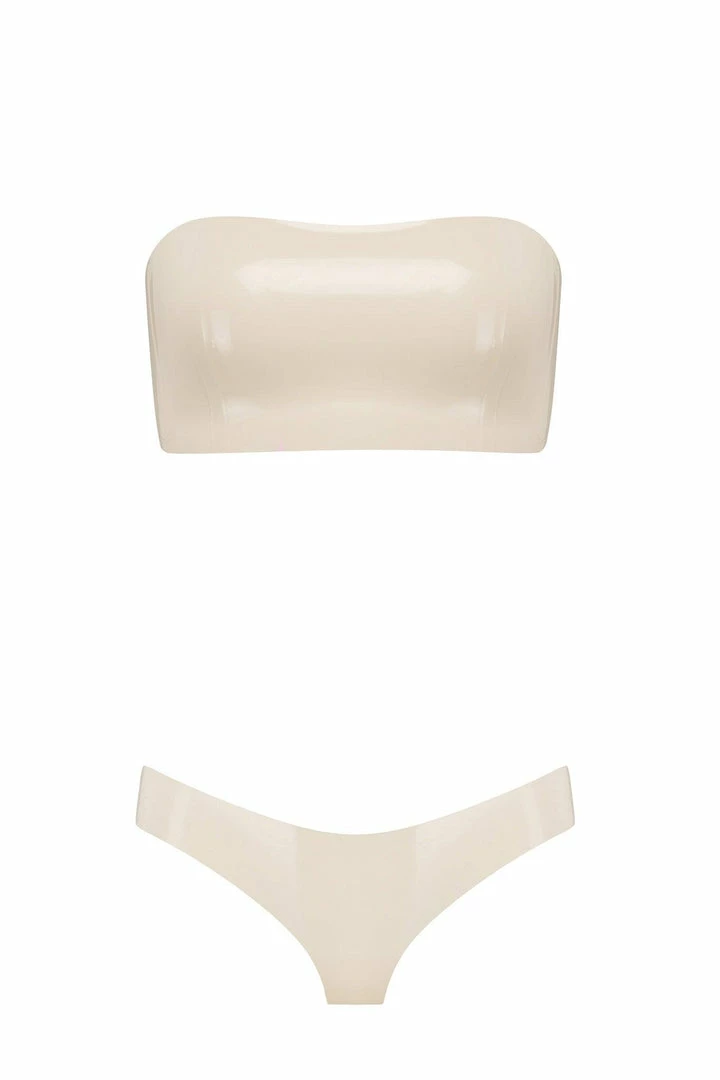 Featuring a strapless design, the Crop Top in this latex lingerie set is the perfectly constructed using tailored panelling to support your curves. Boning at each side of the top prevents any rolling or slipping, offering you the support you need. Paired with the Latex Cheeky Brief.