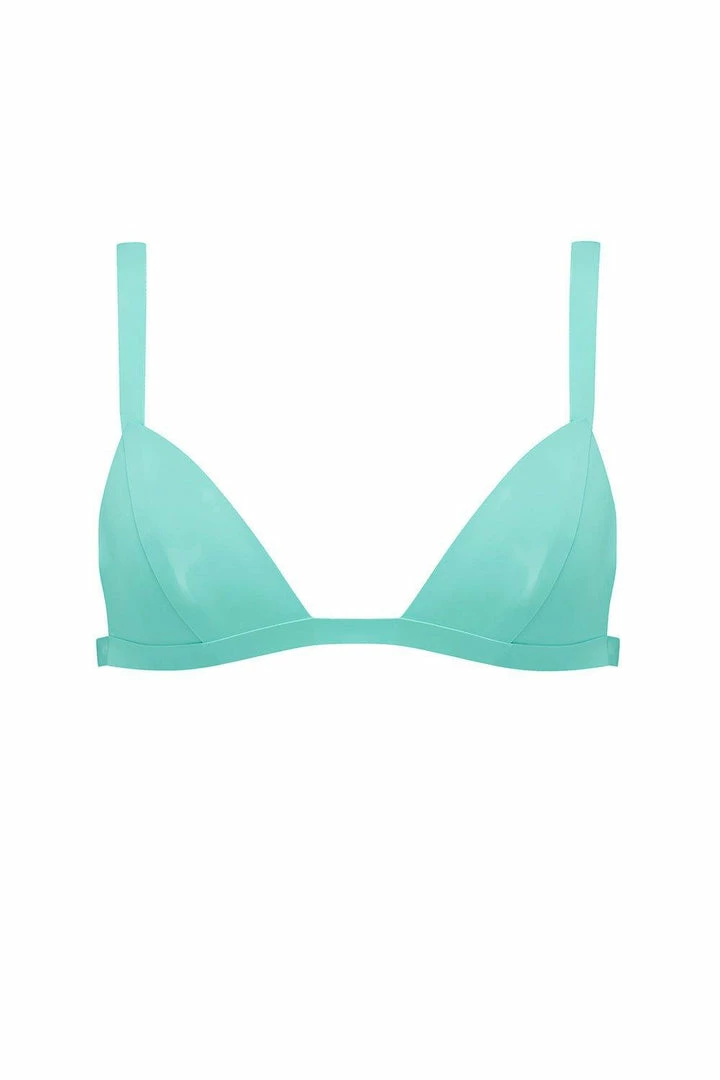 Our Jade Green Latex Triangle Bra, created in double thickness quality latex and featuring a centre cup seam to add volume within the cup creates a beautiful minimal look. Pair with our skirts, knickers or leggings to complete the look.