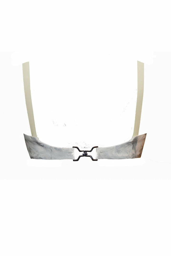 Unleash your inner femme fatale. A twist on a classic, the stunning Peep Bra features a balconette style with cut out sections, lace up panels and metal components to the cups. An exceptional piece composed of Marbletex® and with a branded buckle fastening exclusive to Elissa Poppy, the Peep Bra is bound to leave a lasting impression.