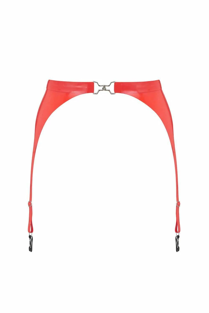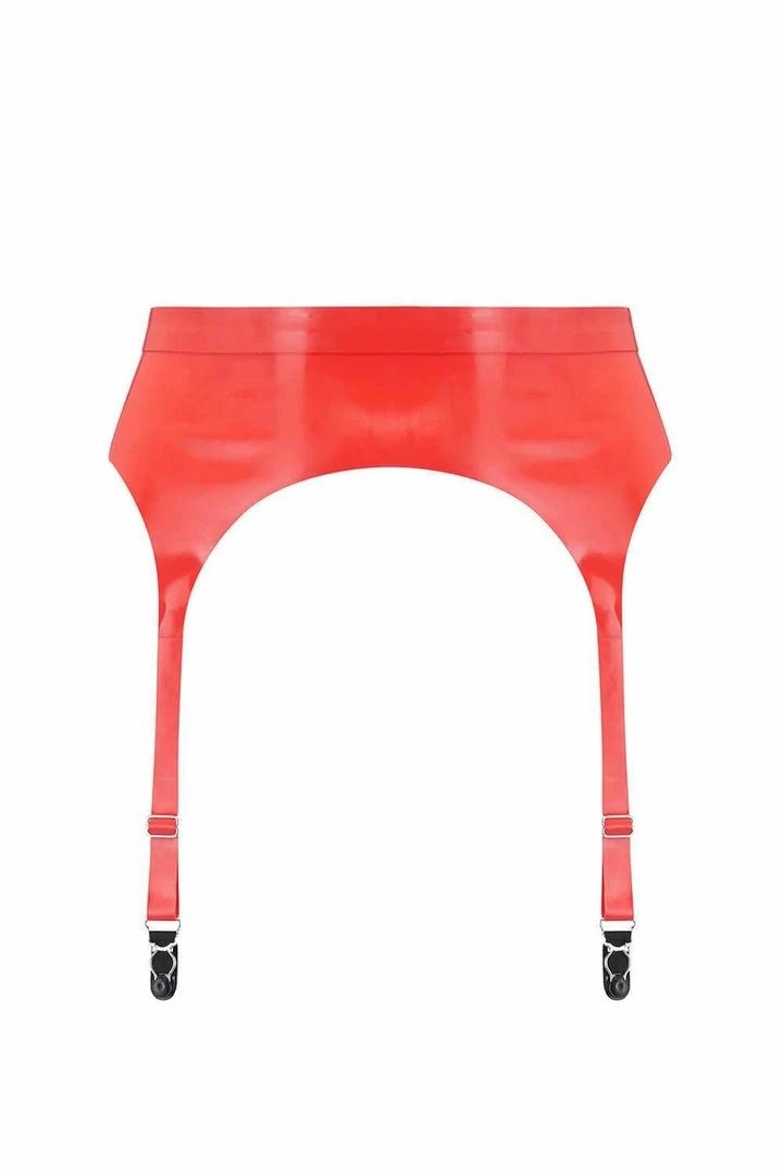 Pull your outfit together with this classic red latex garter belt for the lingerie addict. Featuring a double thickness waistband, with an exclusive Elissa Poppy branded buckle and adjustable strapping to the suspender clips. Pair with our range of latex lingerie and latex stockings to complete the look.