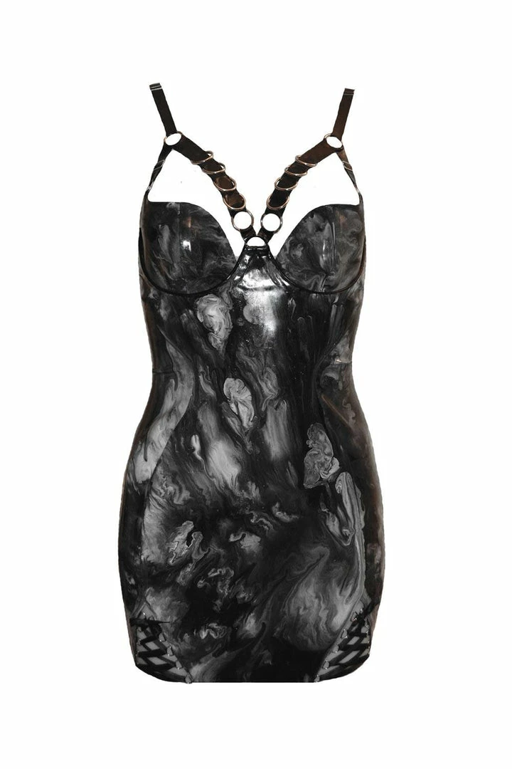 The beautiful Harness Dress sculpts your body with a stunning Marbletex® material and metal detailing to the cups. A truly show stopping piece with a fully fitted YKK zip to the back with adjustable strapping and lace up detailing at the front.