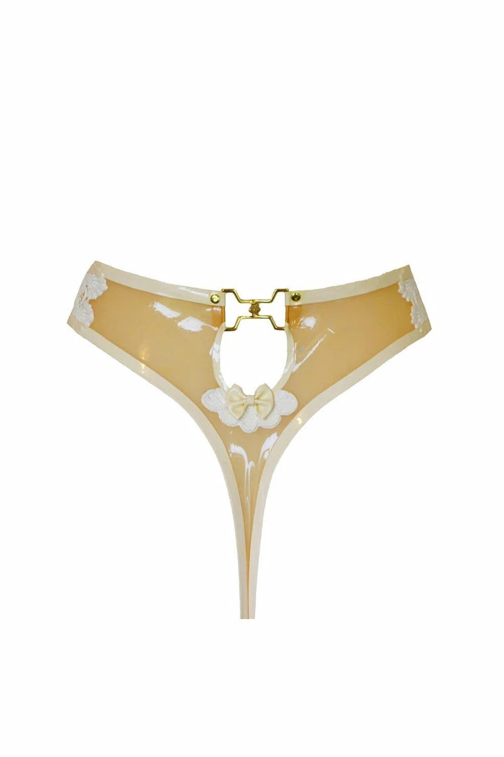 The Maia Crotchless Knickers, the ultimate cheeky staple piece for any lingerie lover’s collection. Sitting high on the waist the figure hugging knicker sculpts your body to create a flattering and beautiful shape. With bottomless detailing to the back and Lacetex® and bow embellishments to the front, this piece won’t be forgotten very easily.