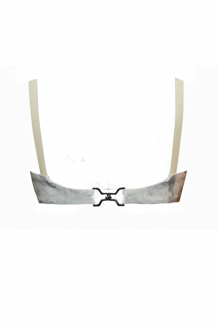 Naughty and nice, and all things right. The Split Cup White Latex Bra in Marbletex® offers a statement that won’t be forgotten easily. With gorgeous lace up panels, metal components and a branded buckle exclusive to Elissa Poppy, give that special someone something to unwrap, the ultimate present is you.