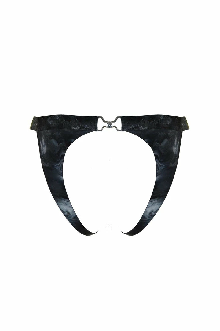 Celebrate your inner femme fatale with these teasing little knickers. Hooked at the back with a branded buckle exclusive to Elissa Poppy the Ouvert Brief creates a seductive look in any outfit. Created in Marbletex®, the brief is open from the gusset and curves round to the back, framing your features perfectly