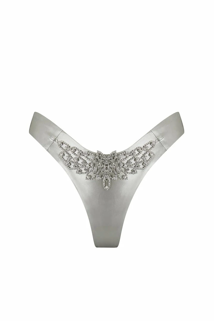 A high leg classic. The Tau Silver Latex Thong includes our exaggerated diamond appliqué to the centre front for a show stopping effect. The thong and high leg cut is very flattering to the body and perfect for this season’s trends.