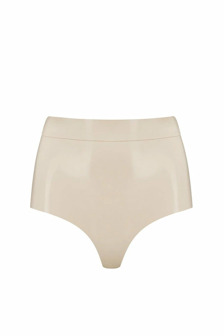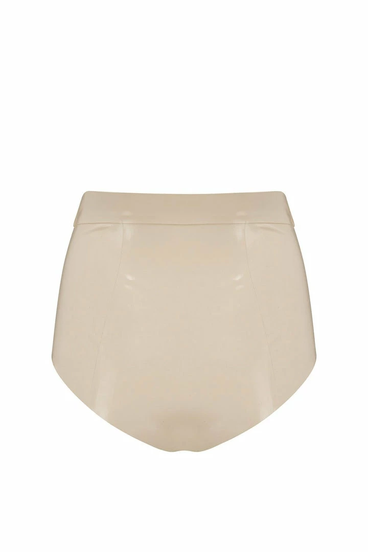 Your ultimate high waist brief. The White Ivory Latex Disco Pant, with tailored panelling at the back to flatter your lovely curves and created using double thickness quality latex to the waist band to pull in the waist. Pair with our range of latex bras to complete the look.