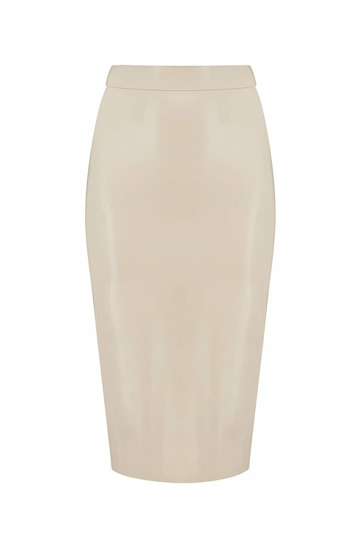 A classic staple for your wardrobe. Our White Ivory Latex Midi Skirt sits high on the waist, using double thickness quality latex at the waistband to accentuate your curves. Paneled sections are tailored perfectly to your body’s contours, whilst the reinforced back split, using beautifully subtle cotton taping, allows the wearer to walk with ease.Â