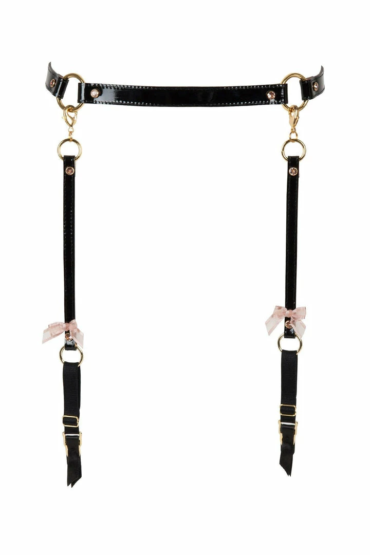 The Nénette Garter Belt is the super flirty garter belt from the new La Vie en Rose Collection. Featuring detachable adjustable leather garter belts, hand tied ballet ribbon bows, and vintage rose SWAROVSKI® crystal rivets. Style with lingerie or over a pencil skirt for a sexy fashion look.