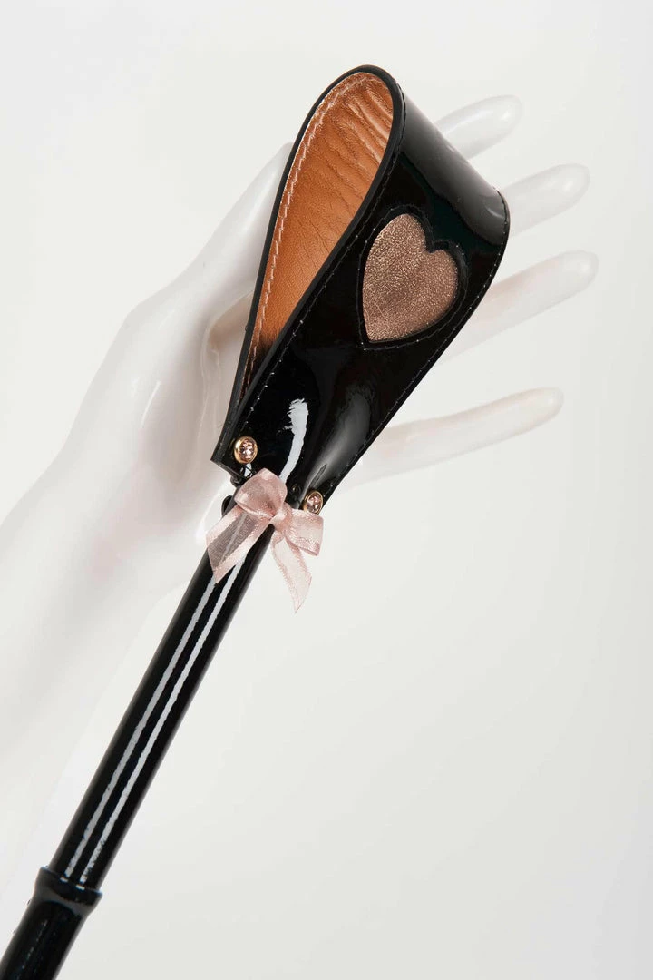 The ultimate romantic luxury bedroom accessory. A mix of shiny black patent & metallic rose gold leathers are used in this handcrafted Nénette spanking crop. Each item is unique and guaranteed to command attention in the bedroom.