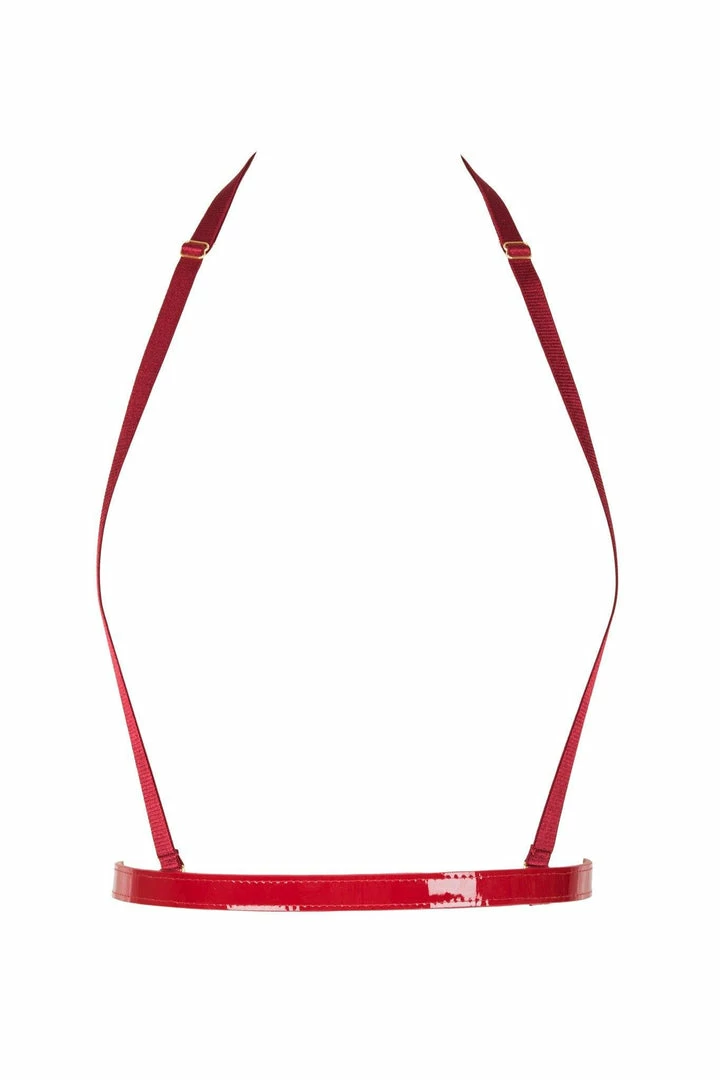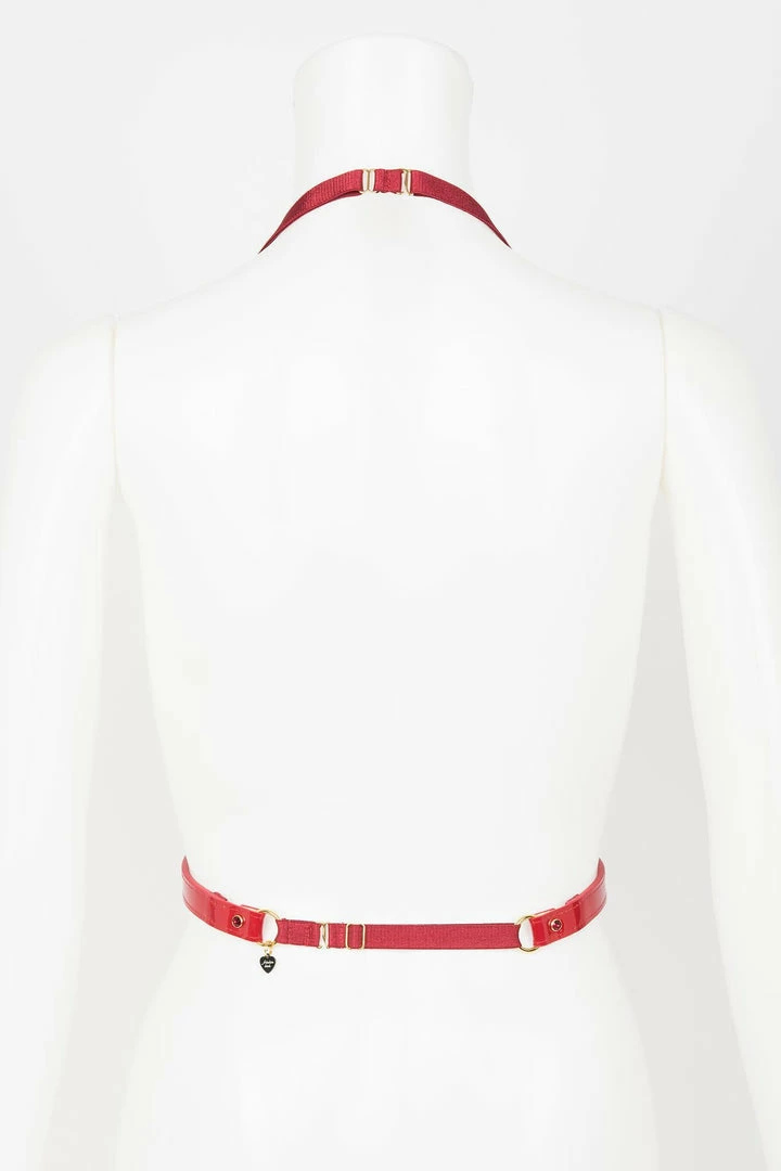 - Shiny Red Patent Leather with Metallic Gold Leather Stitched Straps
