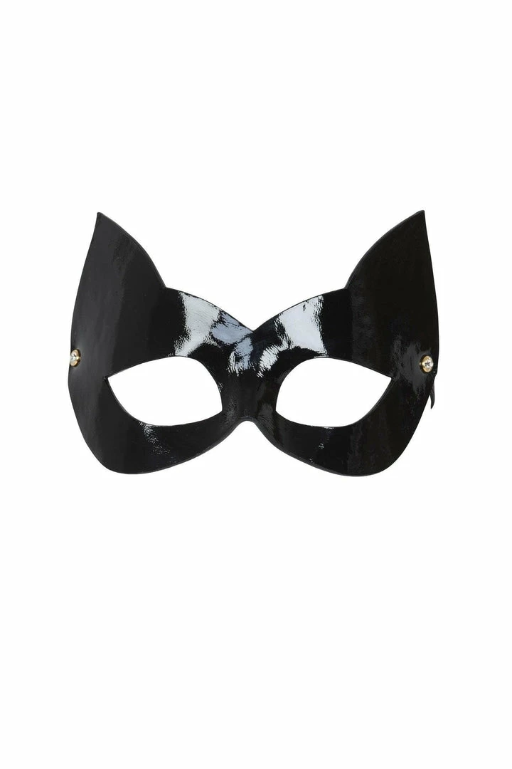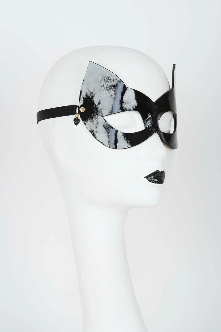 - Shiny Black Patent Leather Sculpted Kitten Mask