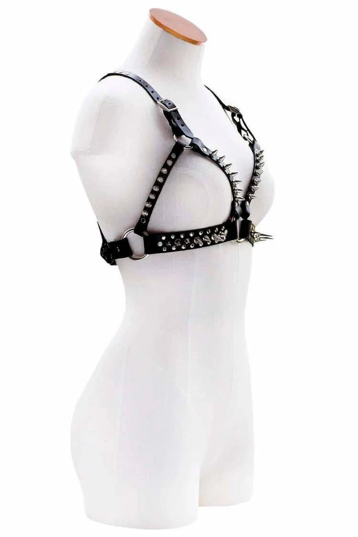 The Thorn Bra sports classic lines with a kick! This baby is fully loaded with studs and spikes all the way around. Straps can be adjusted to be worn cross back, or classic, and are fully adjustable to ensure a comfortable fit.