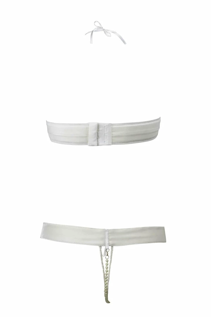 - Detachable string, made up of individually knotted white Swarovski crystal pearls