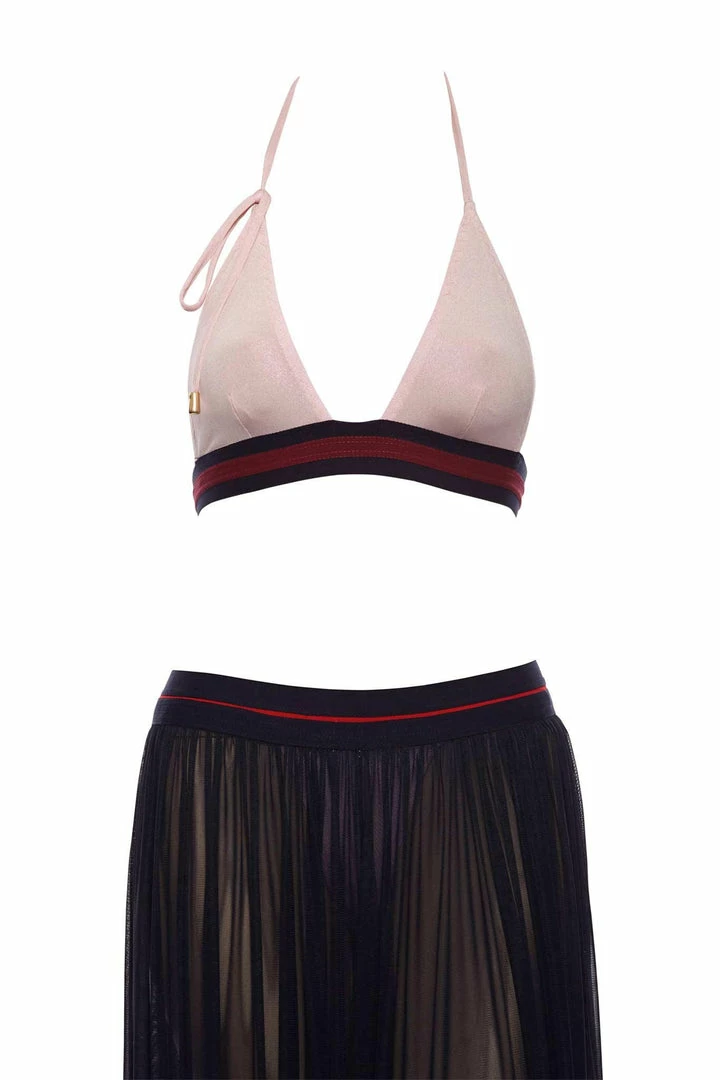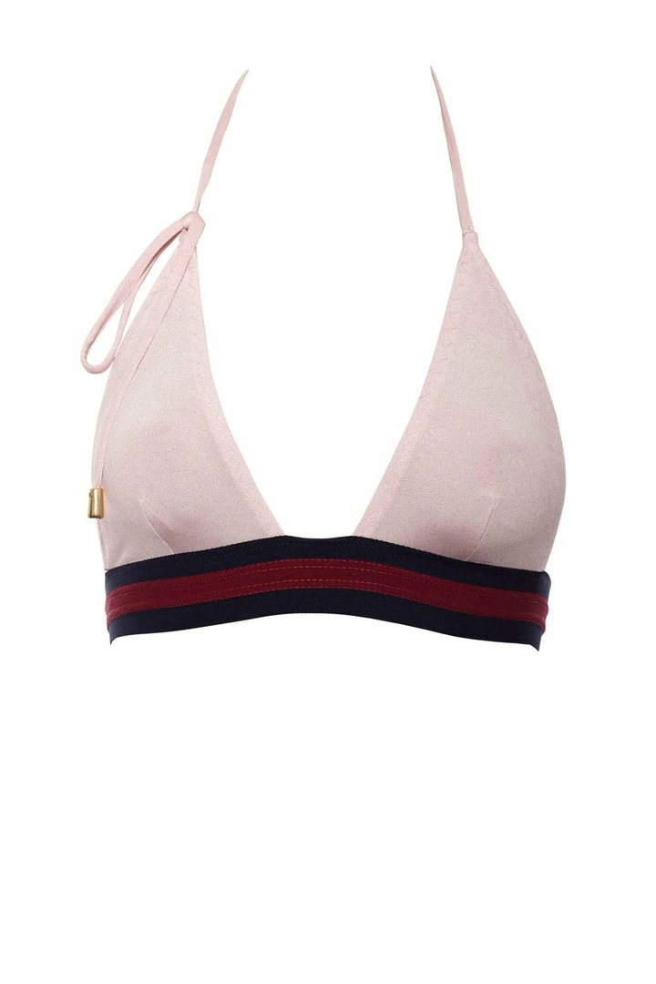 A staple for the resort season and beyond. Inspired by the alluring colors of the sky at twilight, Oriente hints a brand new beachwear concept and versatility. Made from Lycra Flat Plus, the slim style triangle bikini top in cipria pink color with glittering details shines light against the skin, offering a cool, comfortable fit.