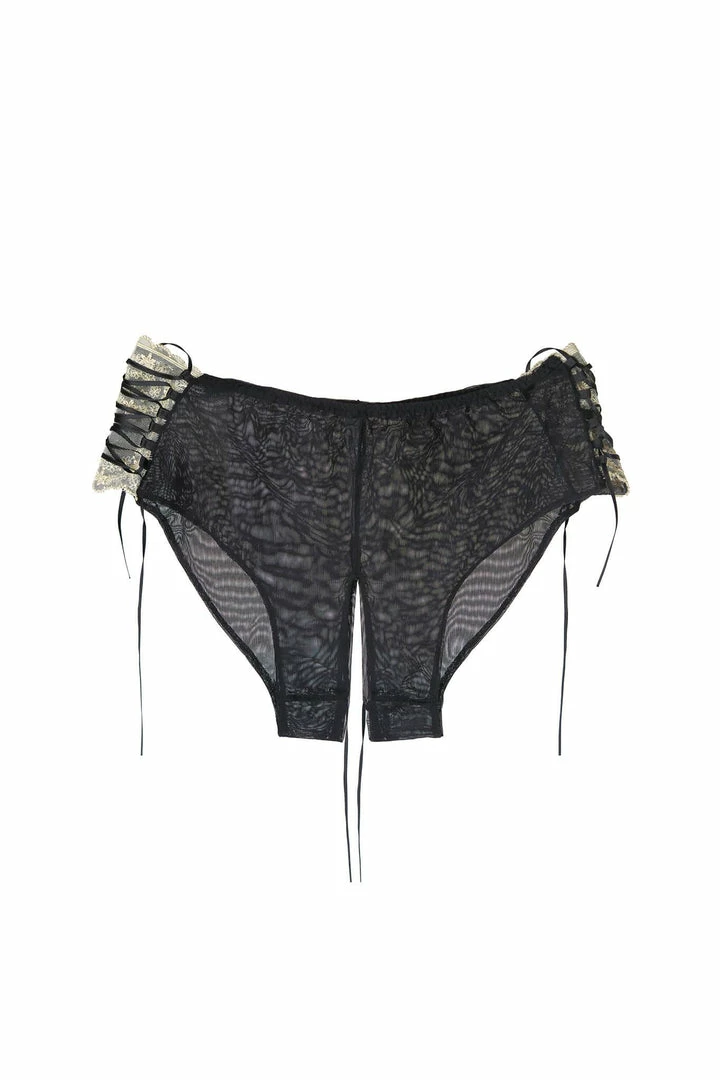 Sensual and sheer, these coulotte knickers blends the Overlapped design’s comfort with timeless style. Inspired by the intricate patterns of Barocco age, these briefs are defined by corsetry-inspired lace-up details for an irresistible allure.