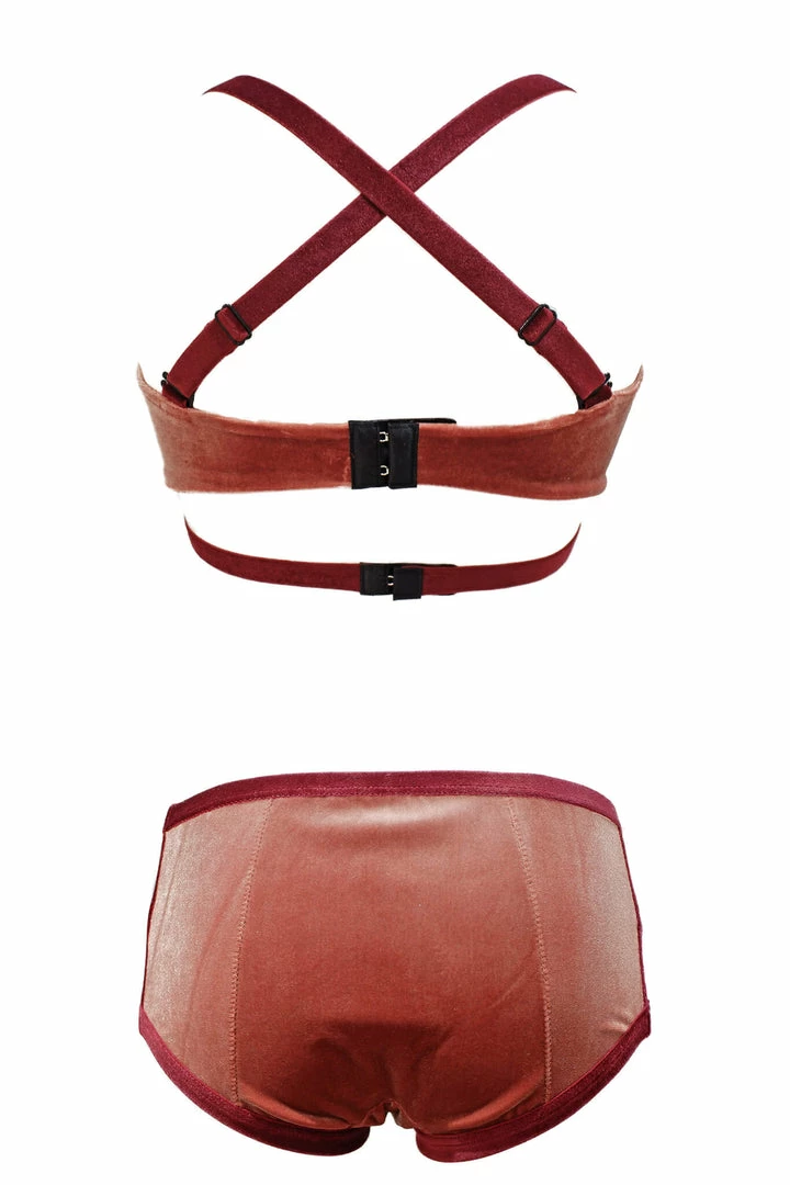 In sultry red pink velour, this period-proof lingerie set is designed to support all women to be happy. Make it fun to put on your lingerie, and enjoy your inner wardrobe throughout the month.