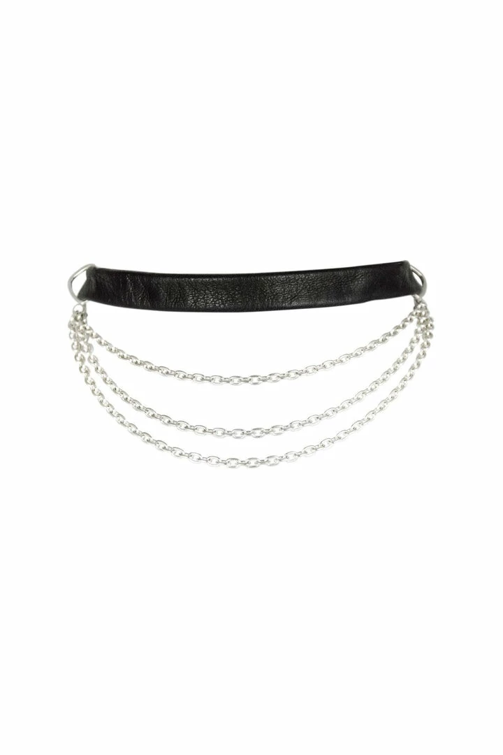 Custom made for singer/songwriter Felice Lazae in her “I Need to Feel” music video, the Need to Feel choker is made with our soft leather and features a removable triple sterling chain and garter clip closure. When worn without the sterling chain, garter clip hardware can be rocked in the front or back or worn on the wrist as a wrap bracelet.