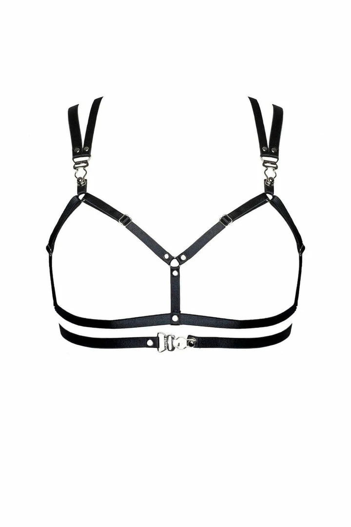 Take your look one step bolder with our ever versatile Open Bra Harness. Our fully adjustable harness is handcrafted out of satin elastic and our signature garter clip closure. Compliment your outfit day or night…or dare to wear it by itself.