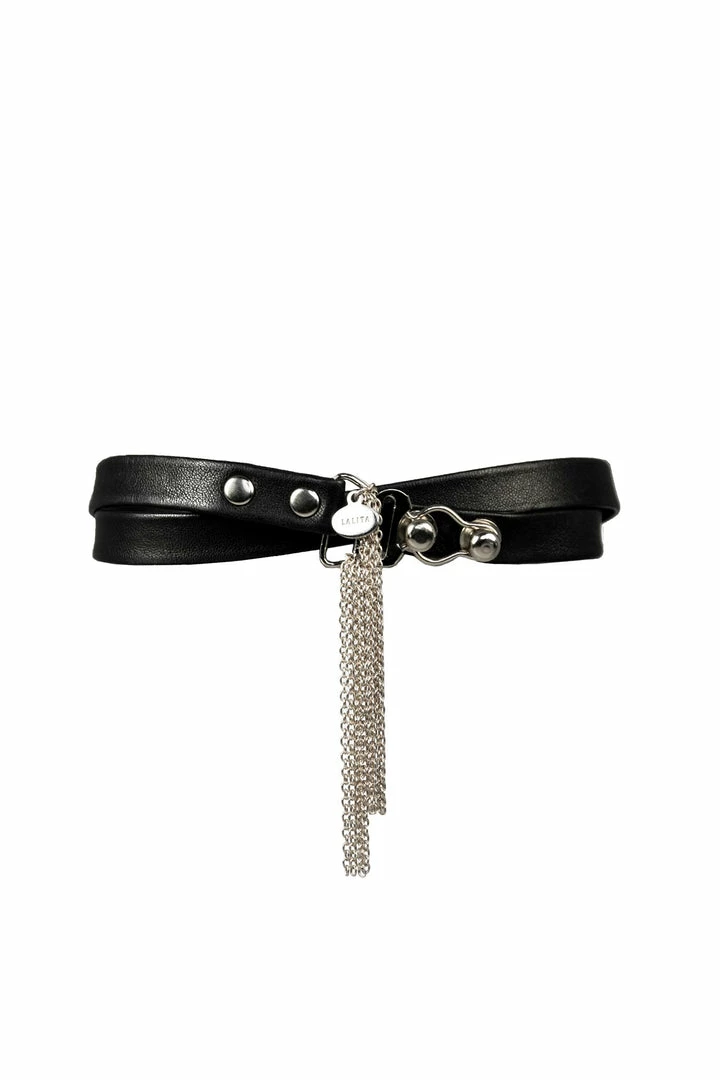Find yourself with the freedom to wrap yourself in lambskin and sterling silver tassels across the skin of your wrist or décolletage. Delight in the barest brush of silver against you as you move through your day.