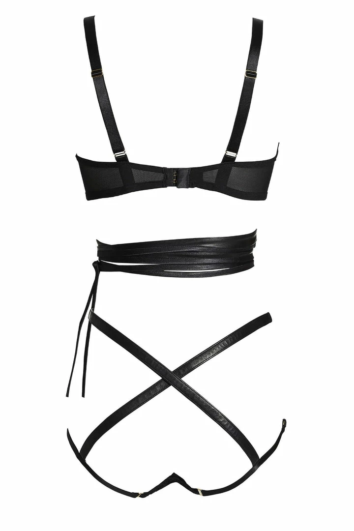 Made from our signature leather, this statement leather lingerie set has a bondage-inspired aesthetic allowing you to wrap yourself in leather strapping to create a fierce look that is equally exquisite as a piece of outerwear.