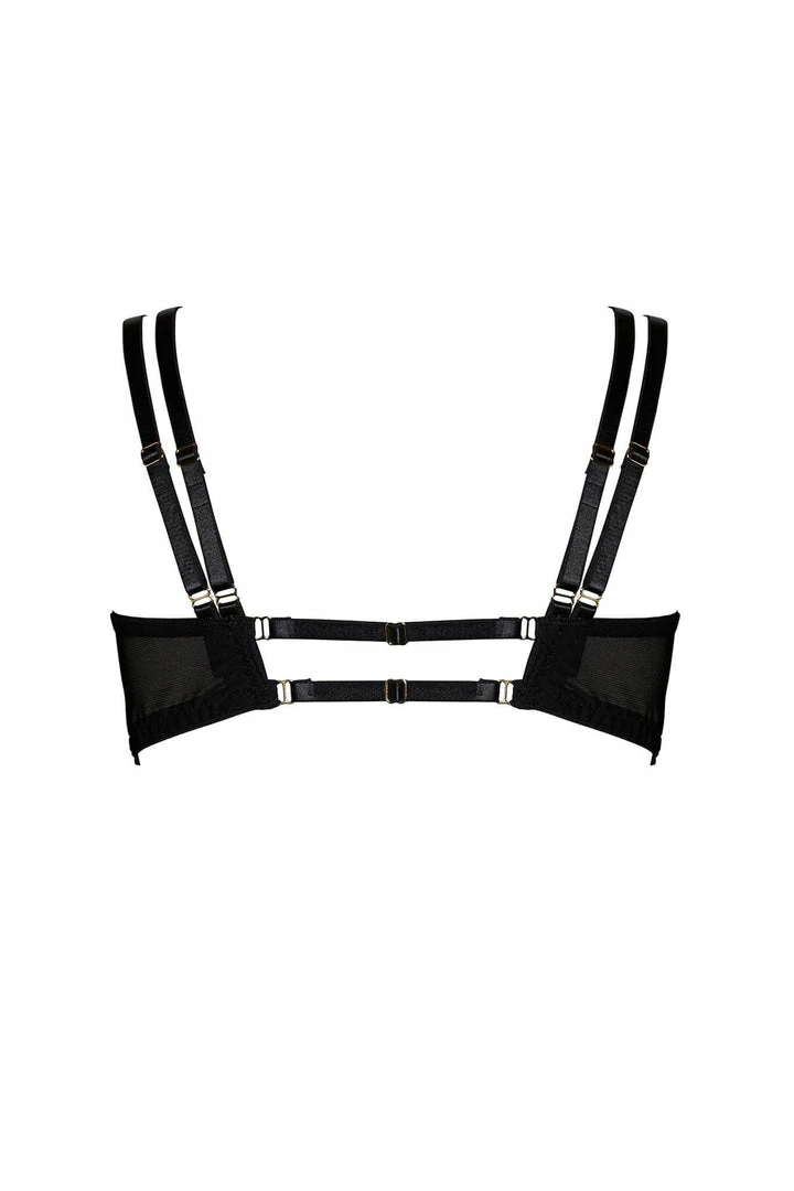 Contrasting opaque and sheer materials create a powerful visual impact in the striking AW20 Mia collection. Each luxurious piece enhances the body’s natural beauty, and creates strong sculptural shapes. Handcrafted using soft leather and sheer mesh the Mia range includes pieces that continue to push the boundaries of the underwear as outerwear trend.