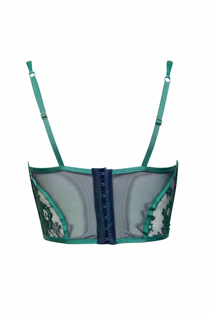 Our French lace longline bra. Also available in Jade.