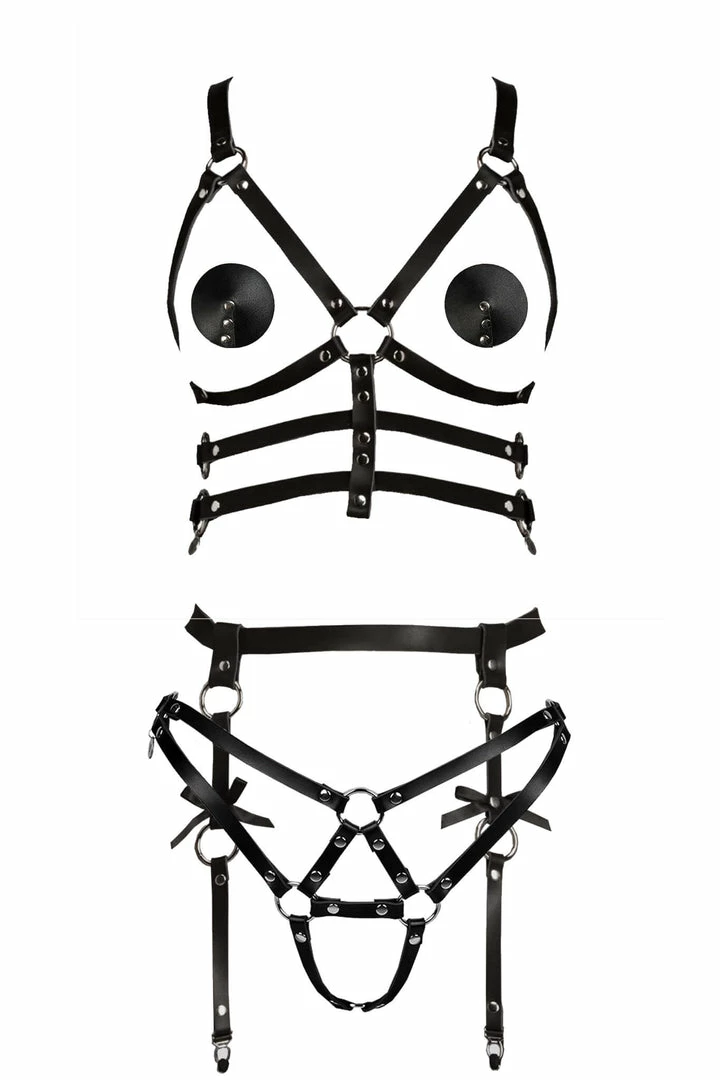 The Subjection Eternity Leather Leather Lingerie Set from the Luxe Bondage is handmade from comfortable Portuguese leather and the open cup design emphasizes your beautiful cleavage.