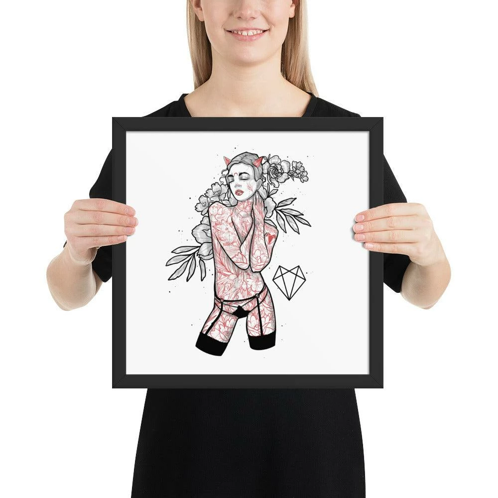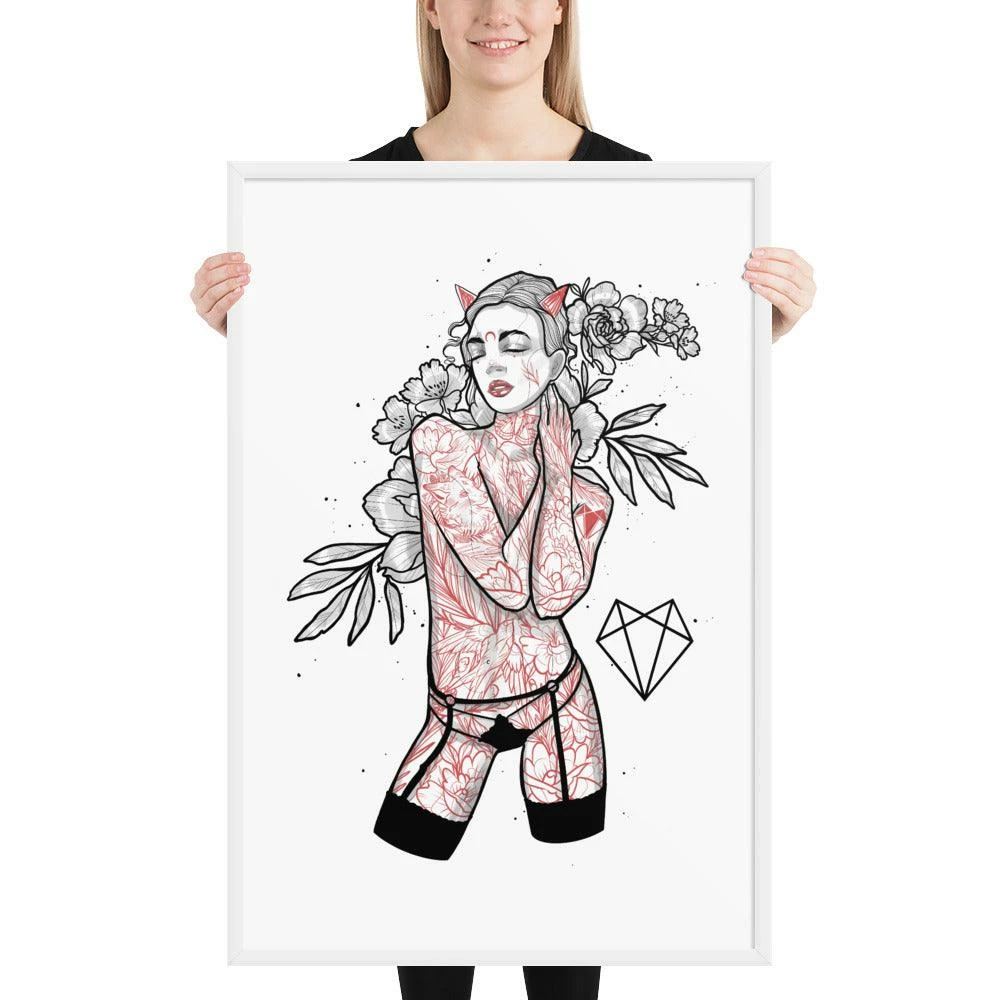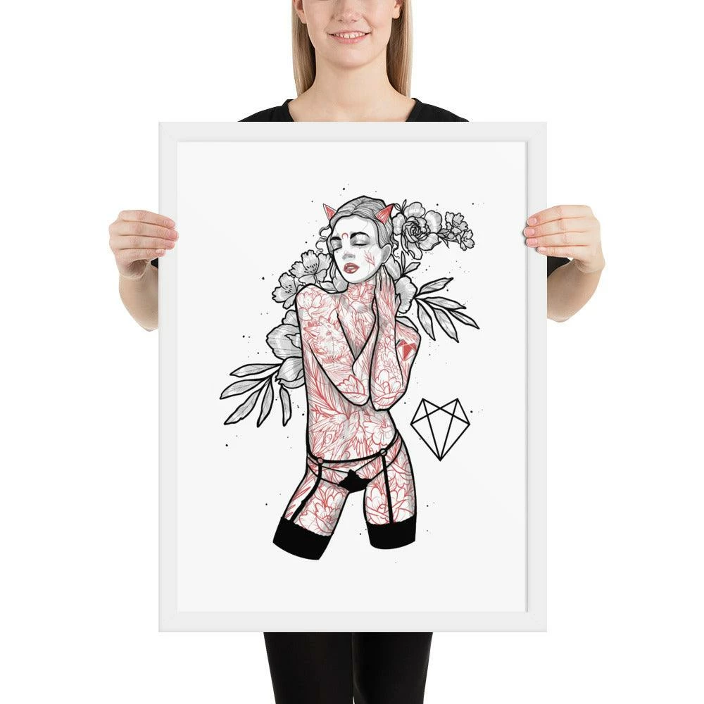 Make a statement in the room with classy, elegant art. Commissioned exclusively by Darkest Fox, this gorgeous print is inspired by our muse and Darkest Vixen, Brooke. Illustration by UK tattoo artist @wolfmumma.