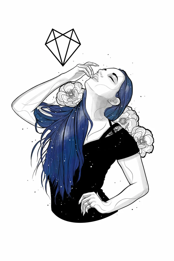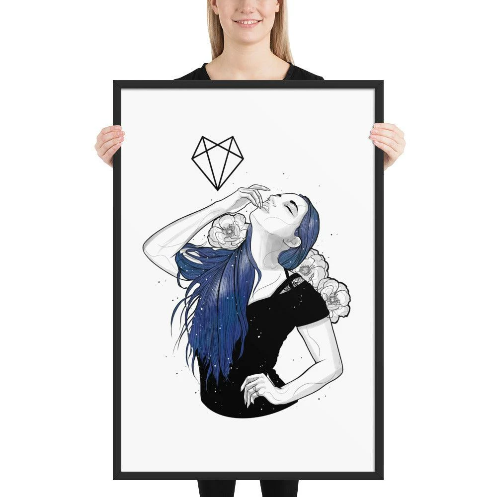 Make a statement in the room with classy, elegant art. Commissioned exclusively by Darkest Fox, this gorgeous print is inspired by our muse and Darkest Vixen, Lexy Lovestruck. Illustration by UK tattoo artist @wolfmumma.