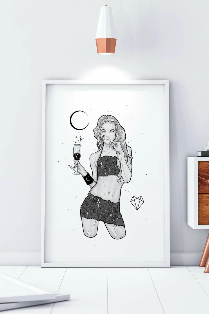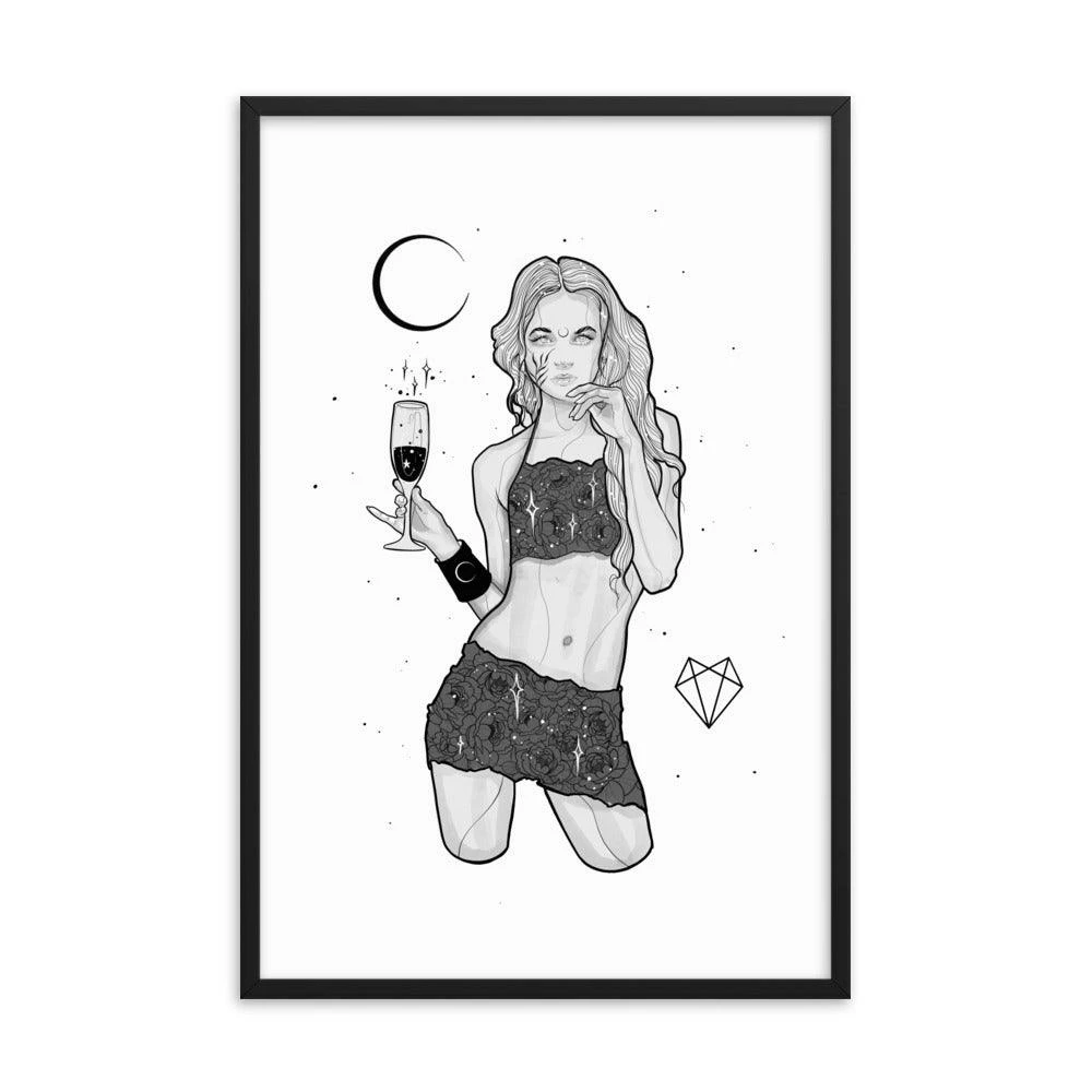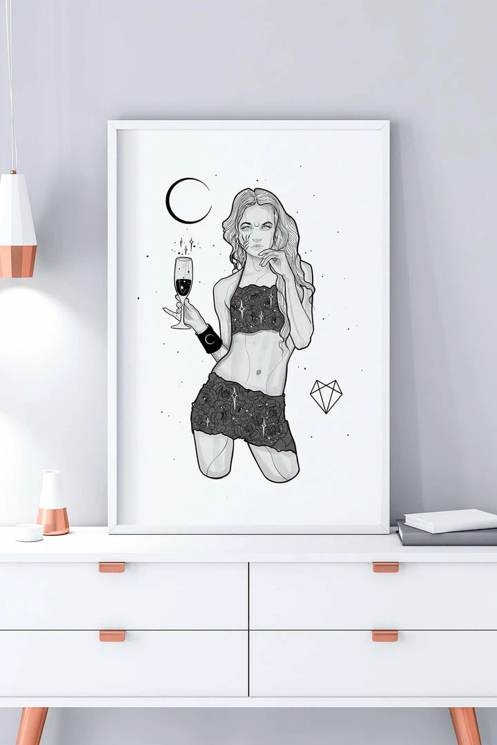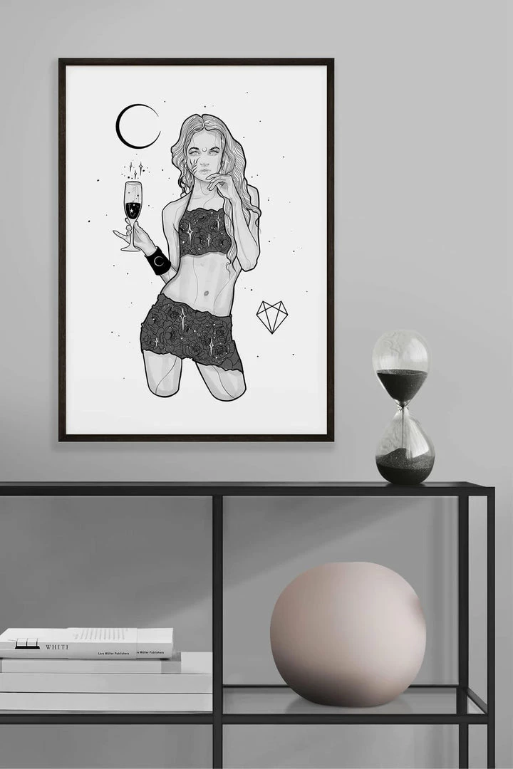 Make a statement in the room with classy, elegant art. Commissioned exclusively by Darkest Fox, this gorgeous print is inspired by our muse and Darkest Vixen, Michala. Illustration by UK tattoo artist @wolfmumma.