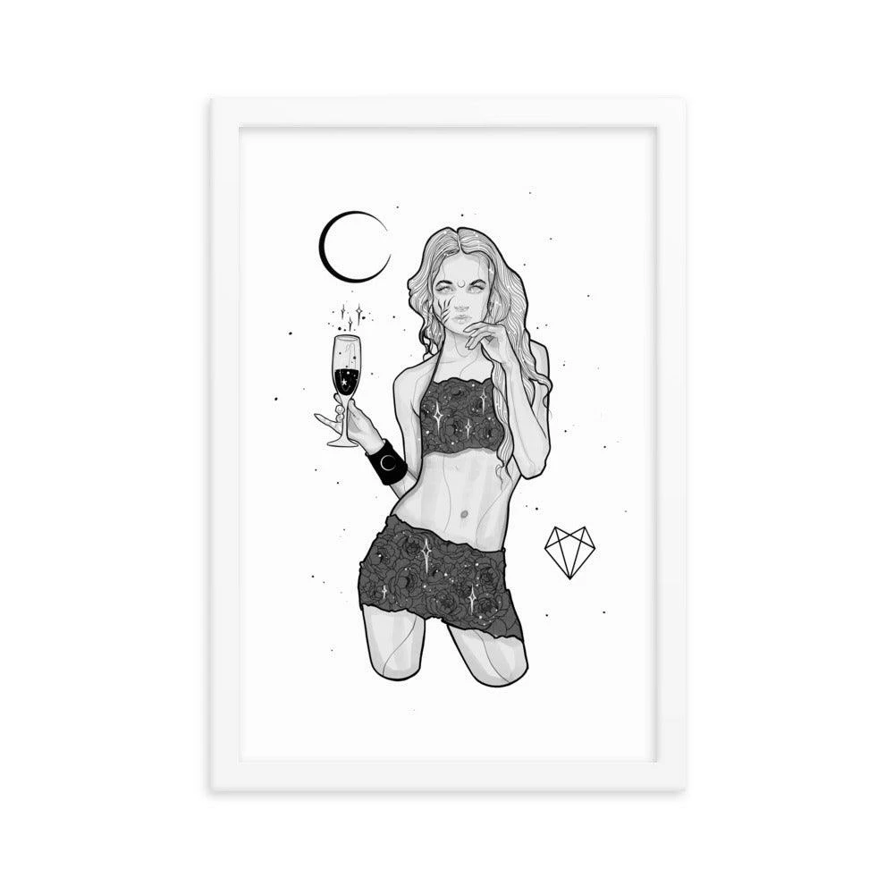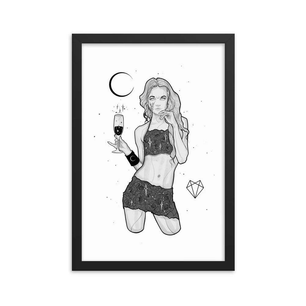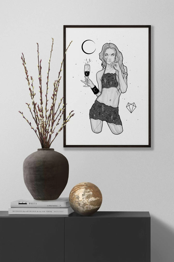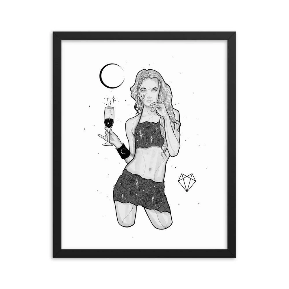 Make a statement in the room with classy, elegant art. Commissioned exclusively by Darkest Fox, this gorgeous print is inspired by our muse and Darkest Vixen, Michala. Illustration by UK tattoo artist @wolfmumma.