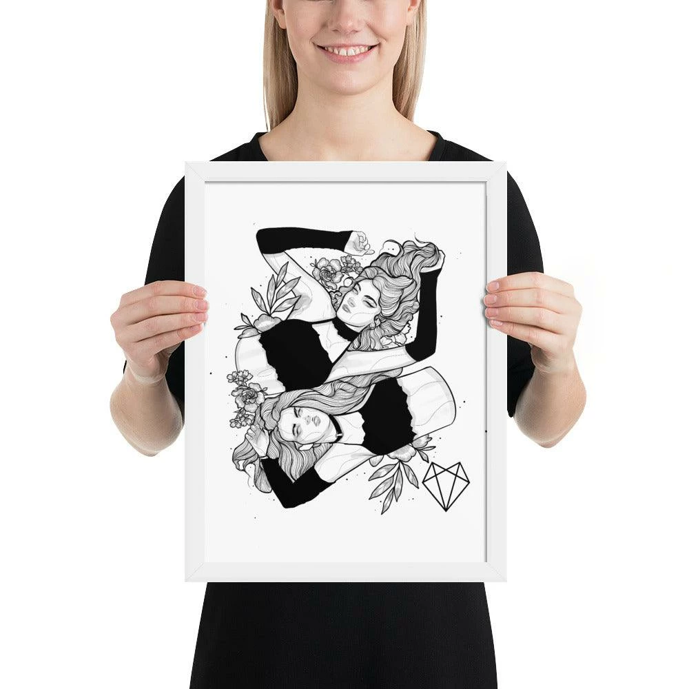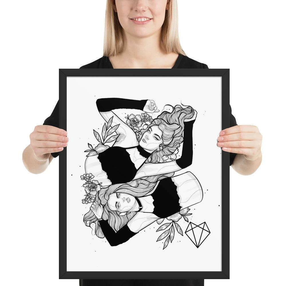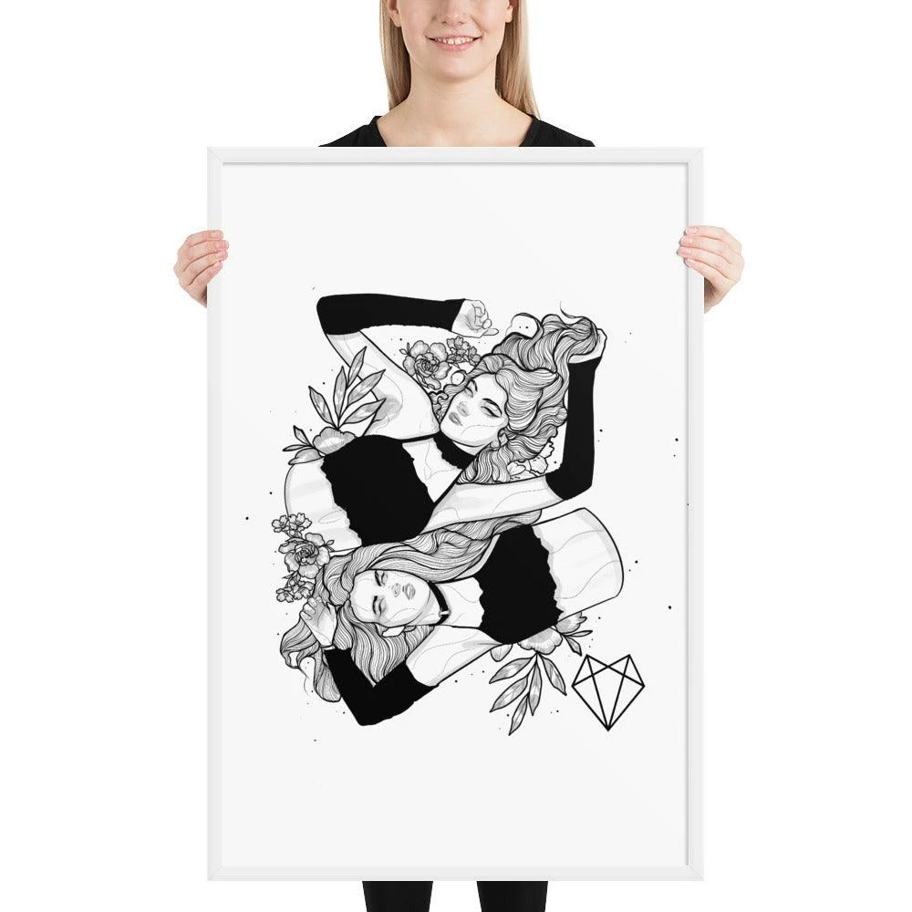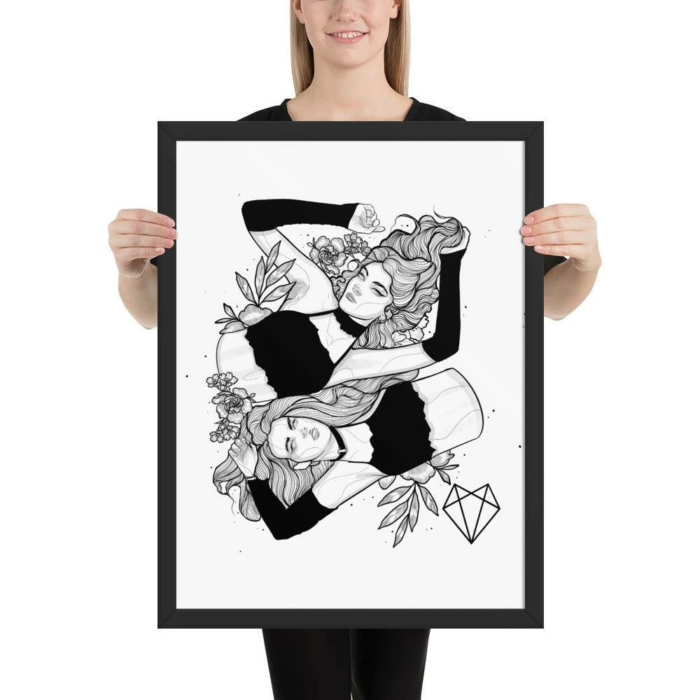 Make a statement in the room with classy, elegant art. Commissioned exclusively by Darkest Fox, this gorgeous print is inspired by our muses and Darkest Vixens, Alli and Julie. Illustration by UK tattoo artist @wolfmumma.