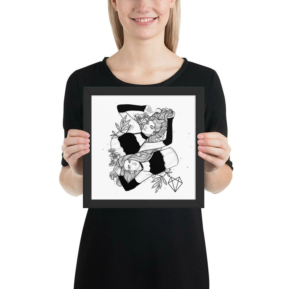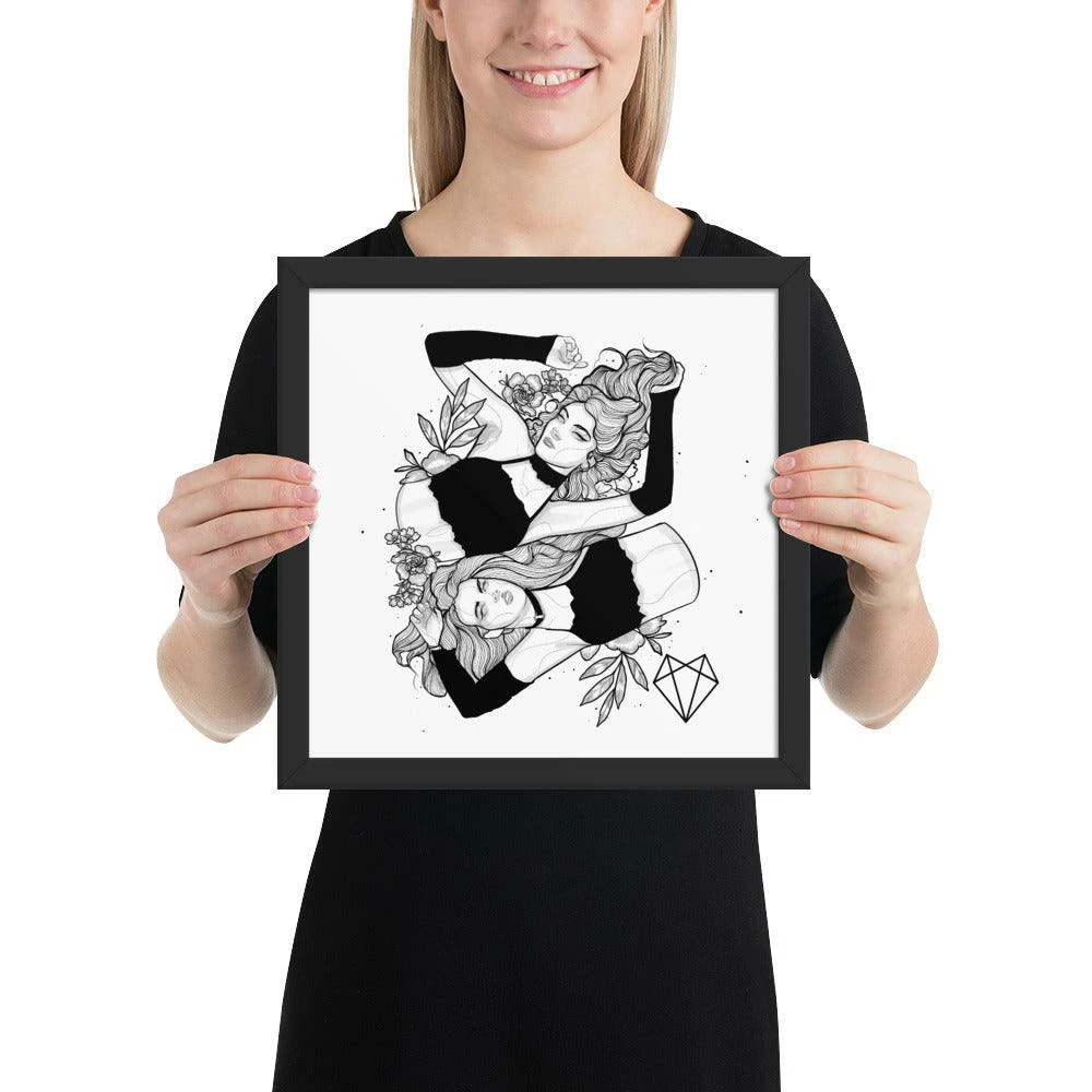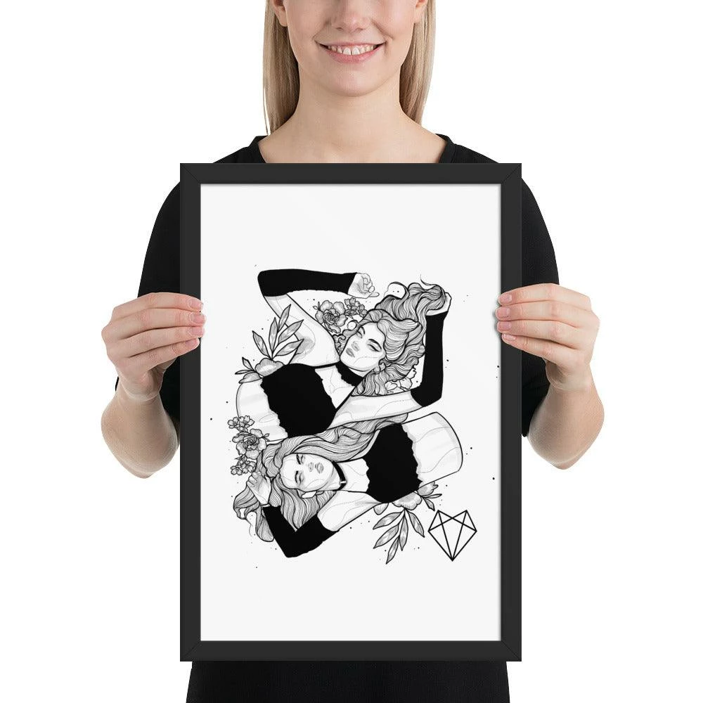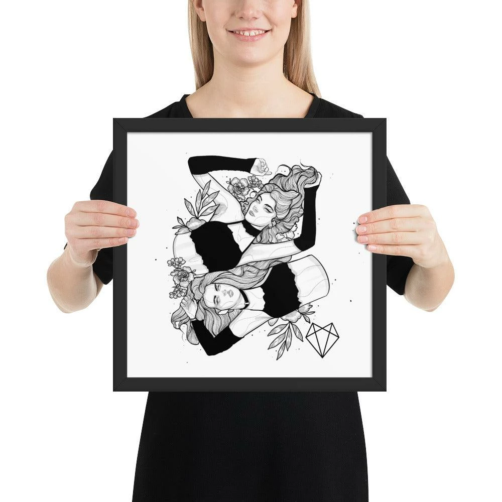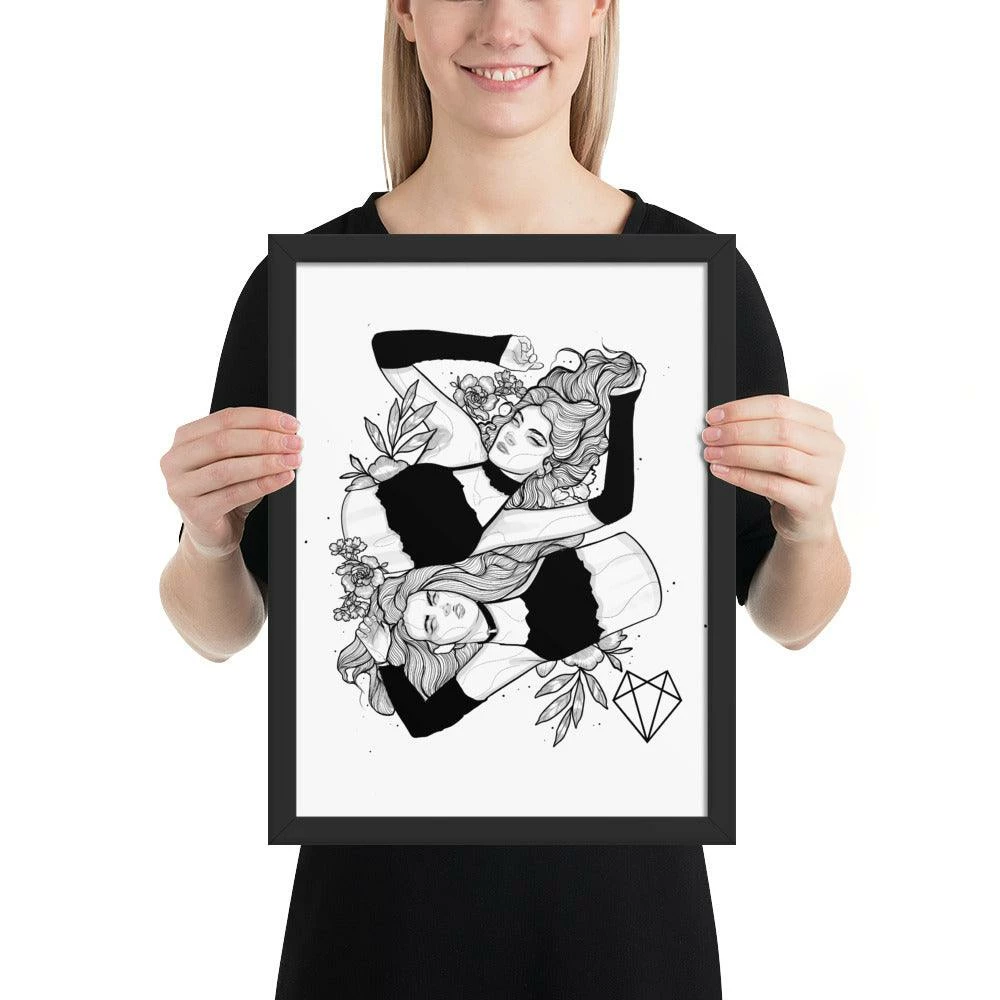Make a statement in the room with classy, elegant art. Commissioned exclusively by Darkest Fox, this gorgeous print is inspired by our muses and Darkest Vixens, Alli and Julie. Illustration by UK tattoo artist @wolfmumma.